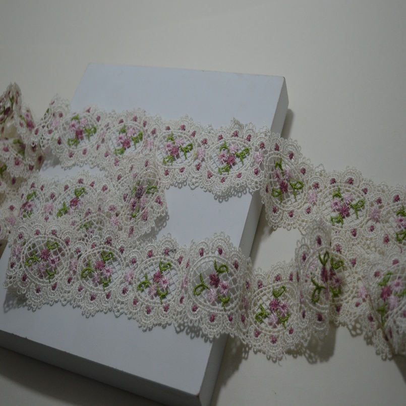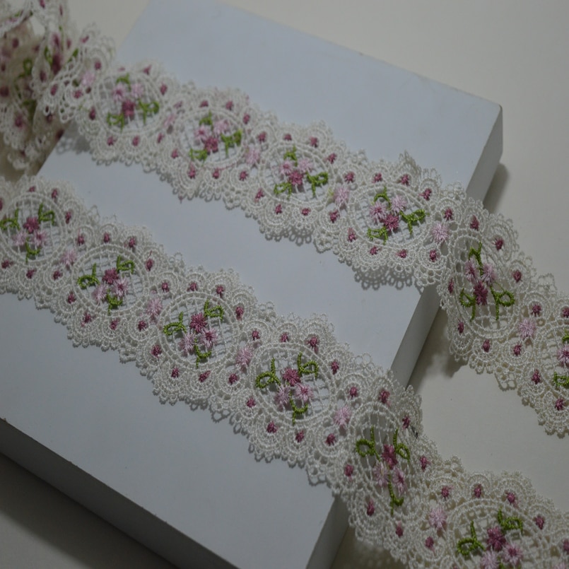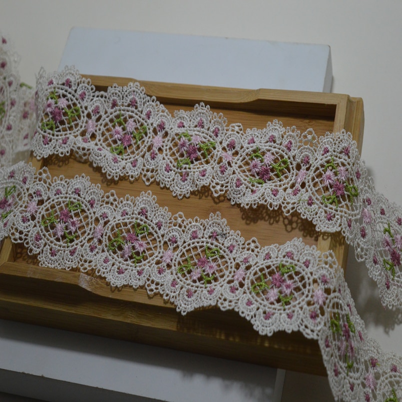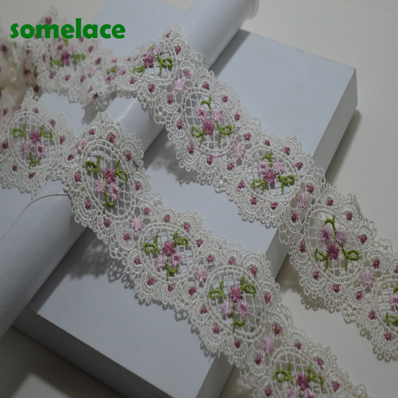 2 ~ 5 10Yds / Lot Fehér Hullámos Stílusú Rózsaszín Üreges Kerek Virágos Venise Csipke Díszítéssel Esküvői Menyasszonyi Ruhák Díszítéséhez