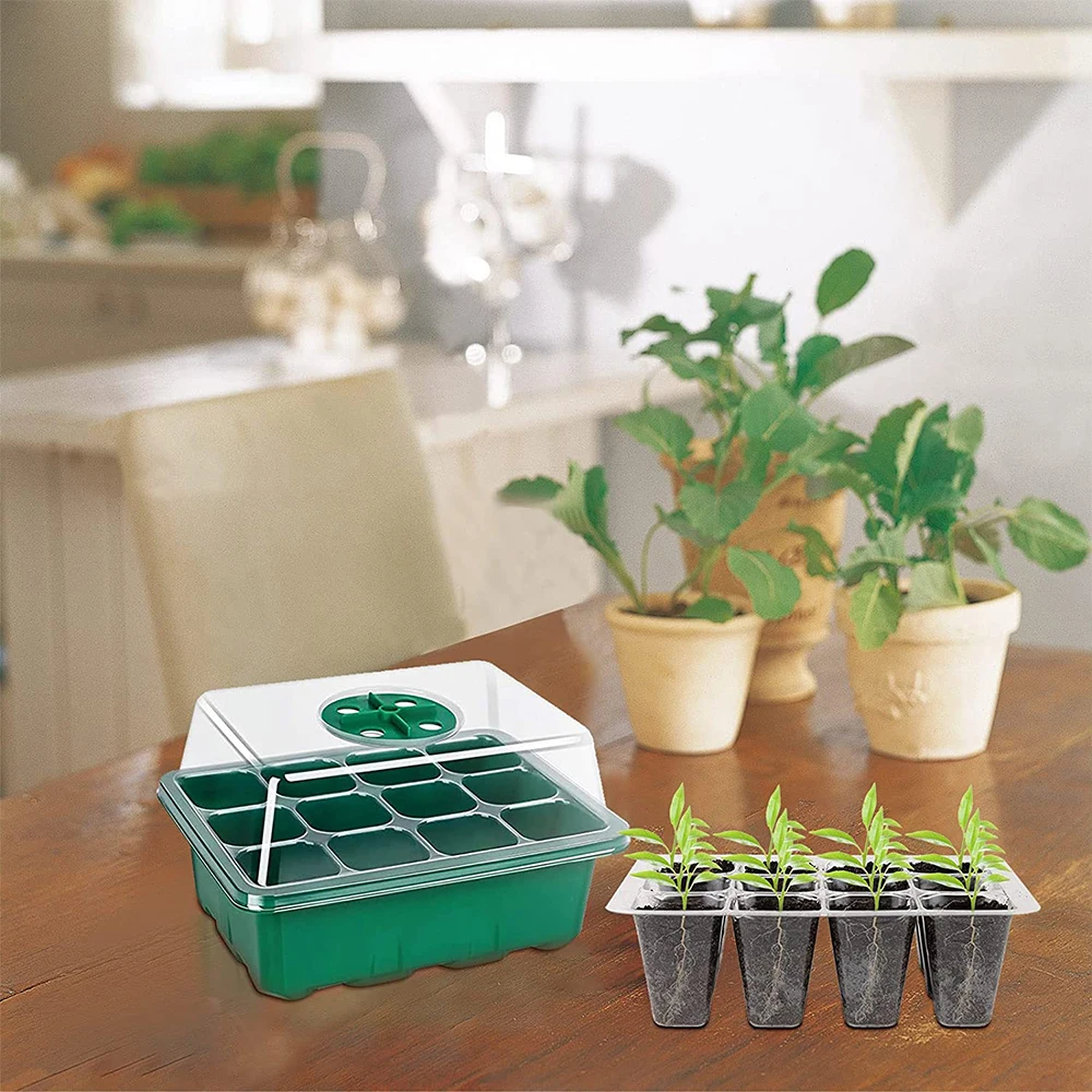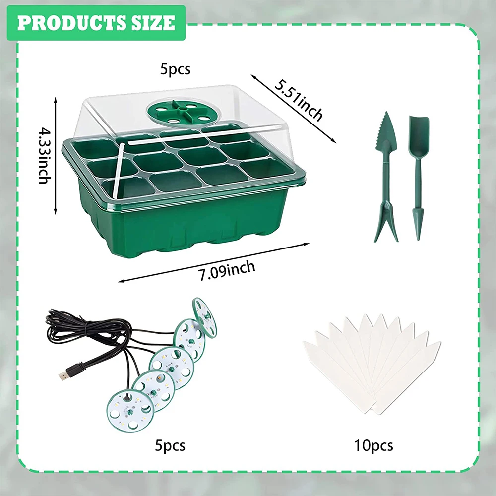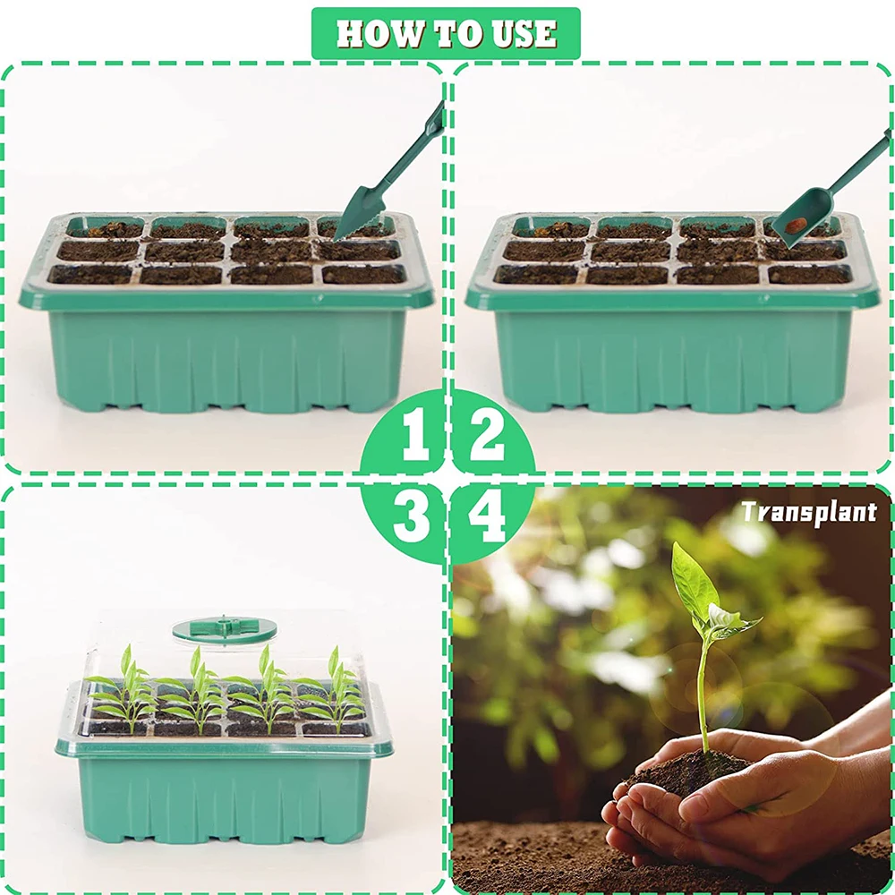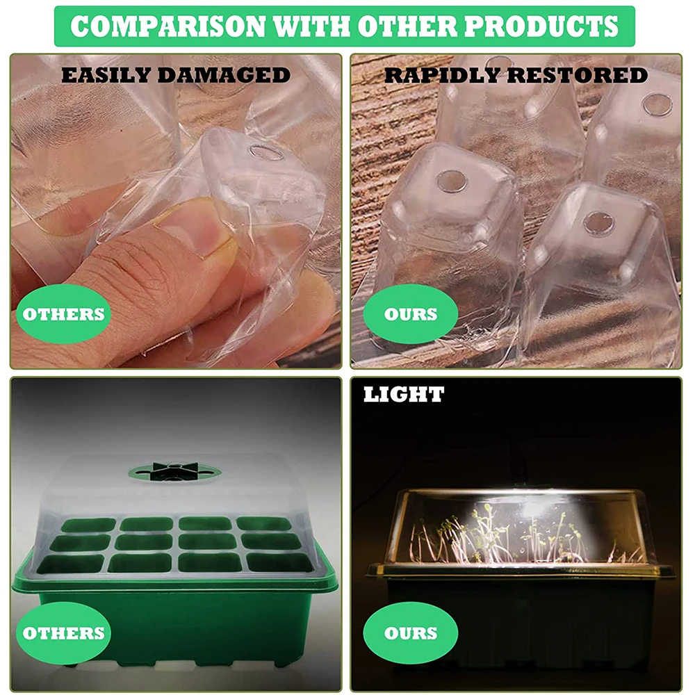 2-5 Csomag 12 Cella Tálca Palack Készlet Kupolával És Könnyű, Vetőmag Indító Tálcával Növekvő Tálcák Páratartalom Állítható Növényi