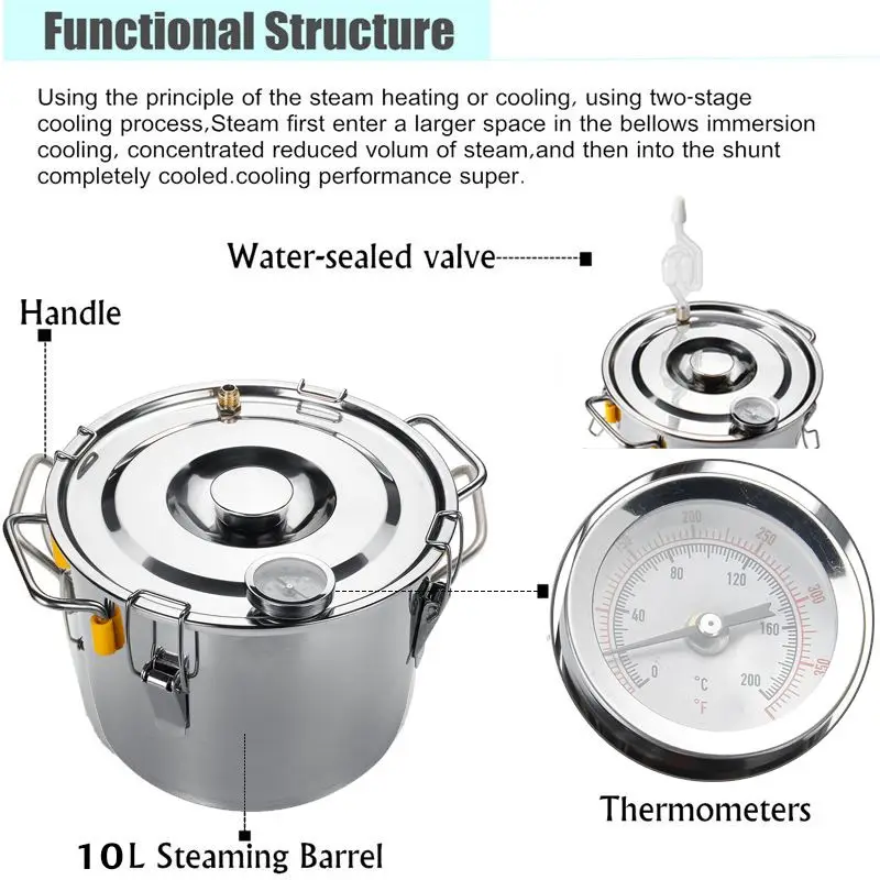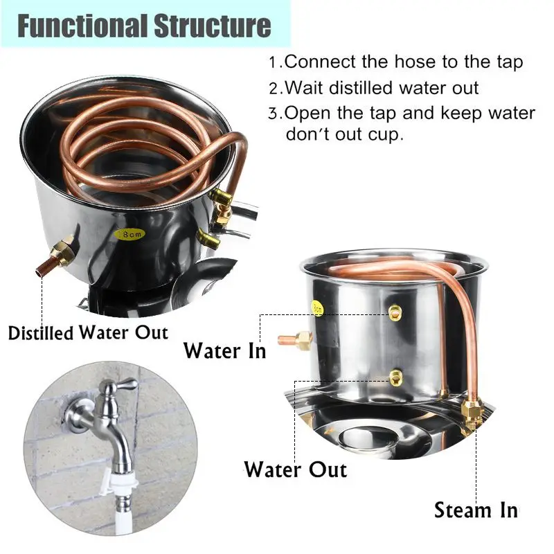 2 Gallon 8L Desztillátor Alambikus Holdfényes Alkohol Még Mindig Rozsdamentes Réz Barkács Otthoni Sörfőzde Pálinkát Illóolaj Sörfőző Készlet