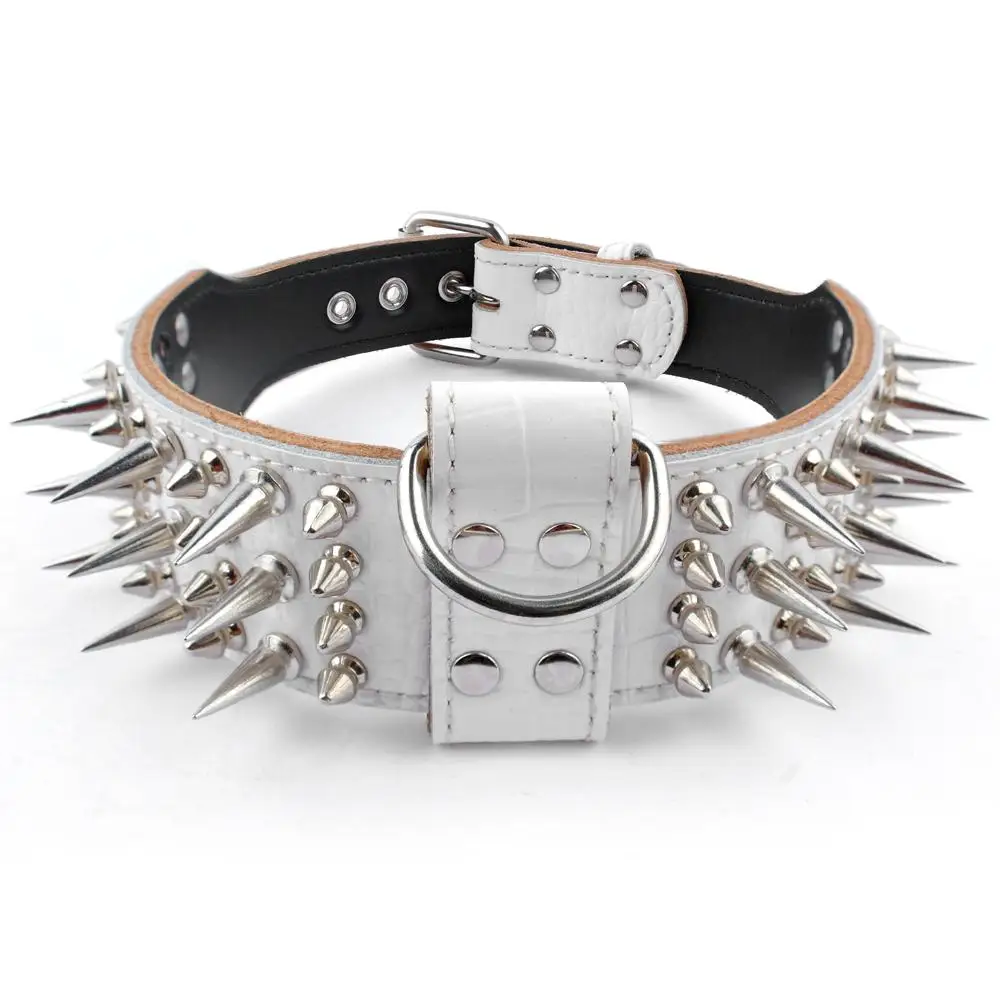2 Hüvelykes Széles, Valódi Bőr Kutya Gallér Tüskés, Kardorozott Kutyagallér Közepes Nagy X-Nagy Pitbull Rottweiler Kutyák Hűvös Tüskékhez