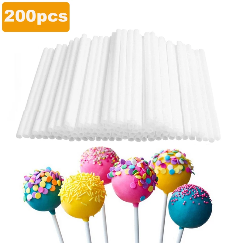 200 db Műanyag Nyalóka Botok Biztonságos Fehér Barkács Süteményes Szerszám