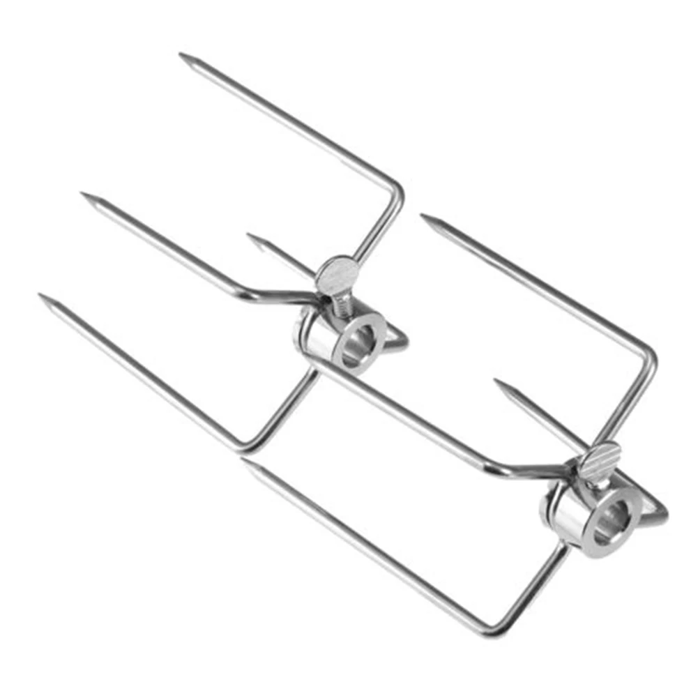 2018 2Db Bbq Villák Rozsdamentes Acél Rotisserie Nyárs Faszén Csirke Grill A Barbecue Tartozékokhoz
