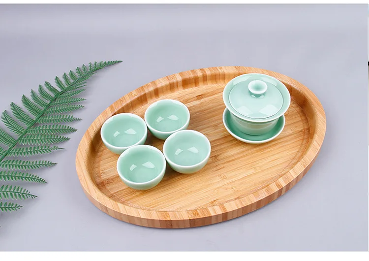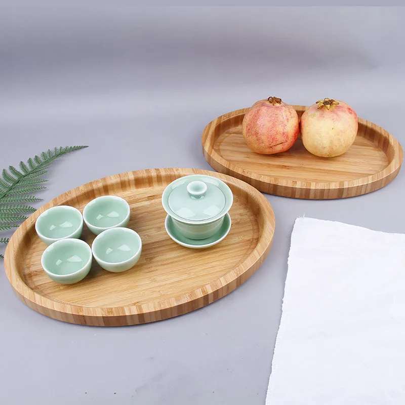 2019 Új, Kerek Alakú Bambusz Serpenyő Gyümölcs Ételek Csészealj Tálca Desszert Vacsora Kenyér Tányér