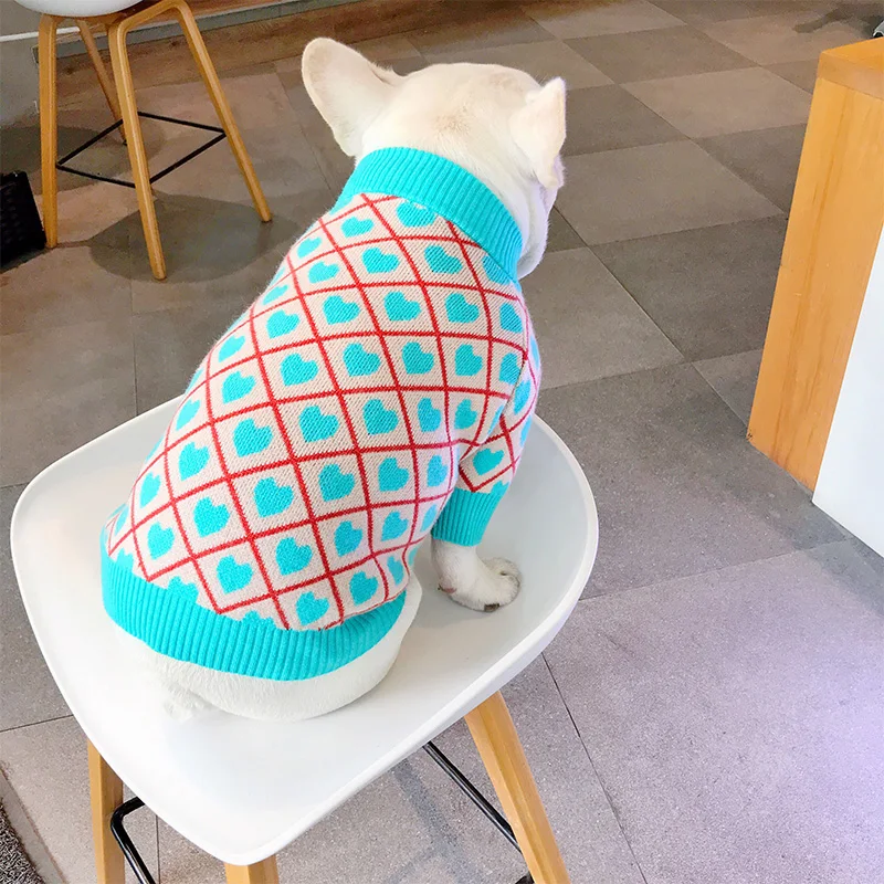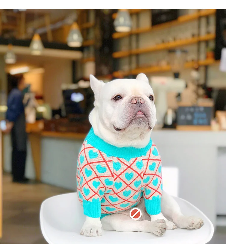 2020 Kék Szív Kutya Pulóver Kutya Ruhák Francia Bulldog Ruhák