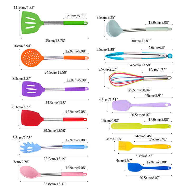2021 Új 15Pcs Konyhai Edények Készlet Rozsdamentes Acél Szilikon Nem Tapadás Spatula Kanállal