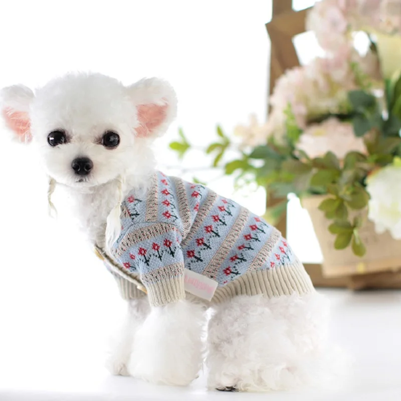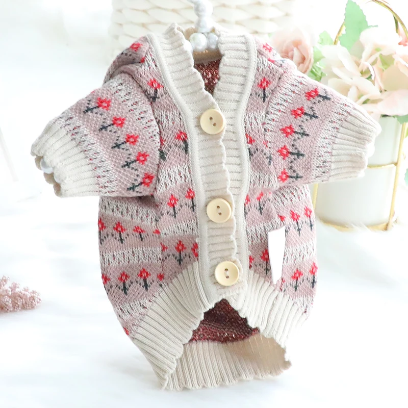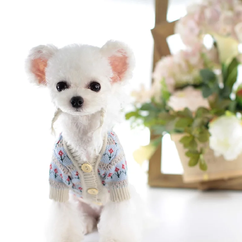 2021 Új Őszi Ruhák Kutyáknak Kis Virág Kutya Pulóver Kardigán Kutya Jumper Gombok Bezárás Kiskutya Bichon Xs S M L Xl