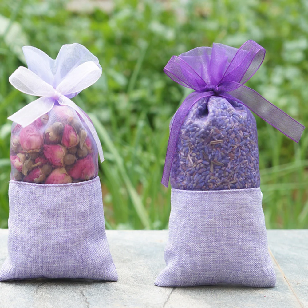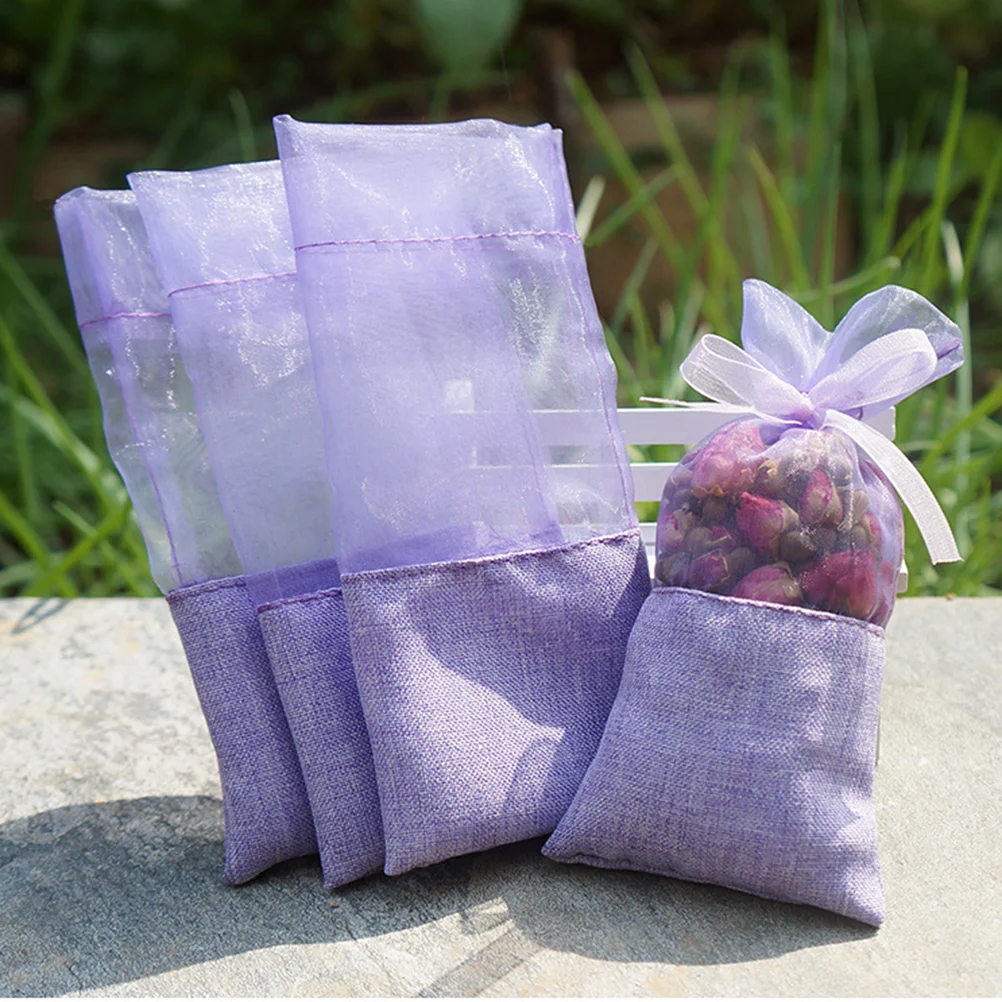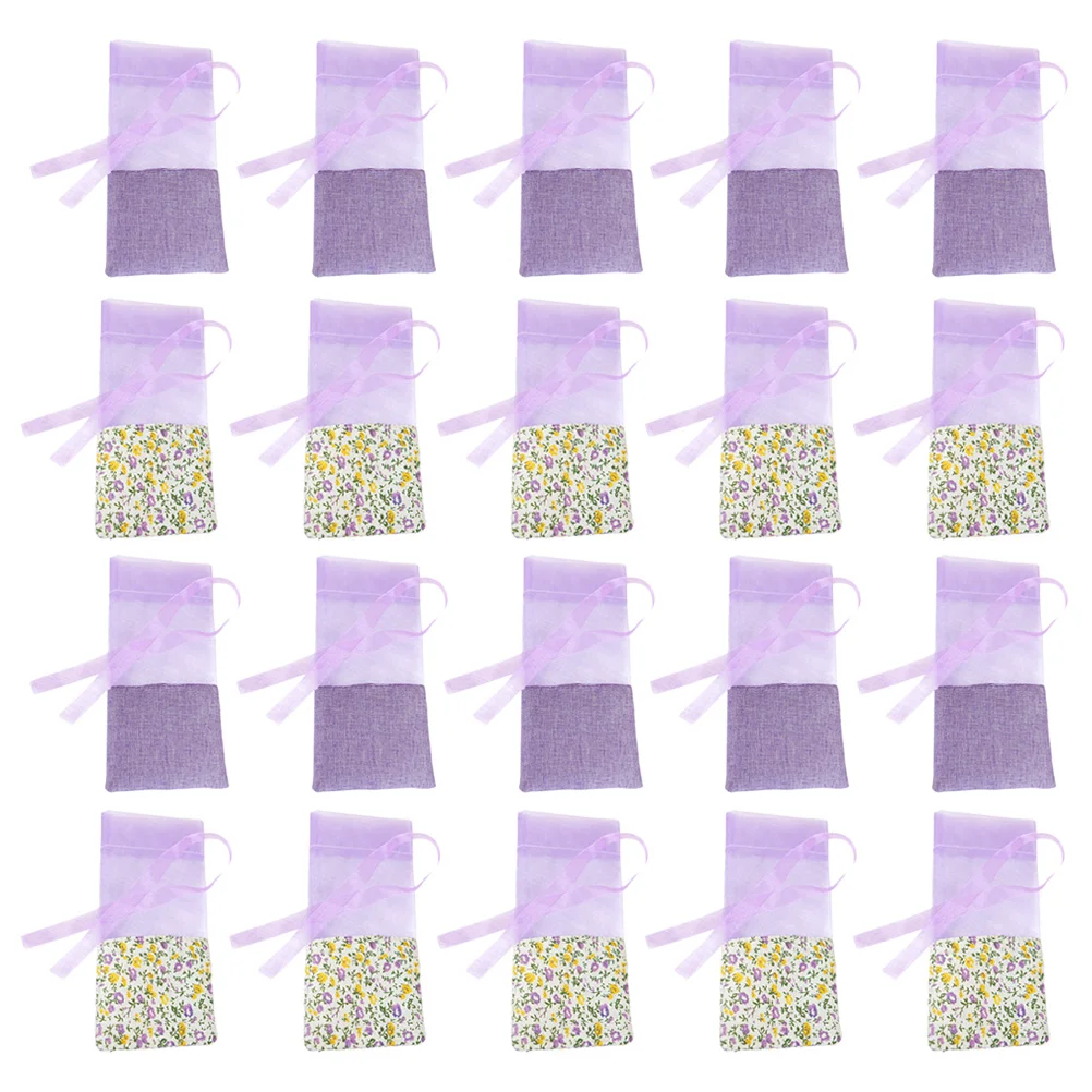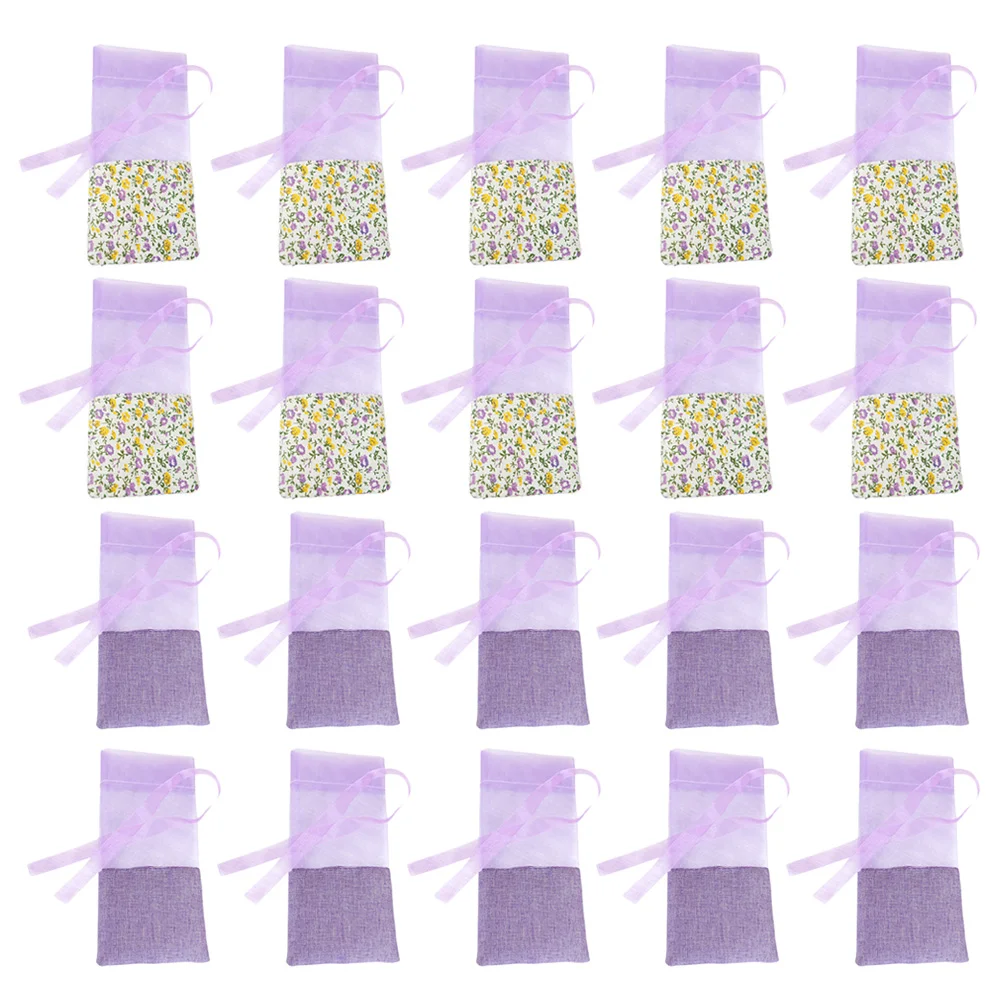 20Db Gauze Levendula Táskák Illat Tasak Üres Szekrény Autóhoz (Világos Lila Virág- És Világos Lila, Mindegyik 10)