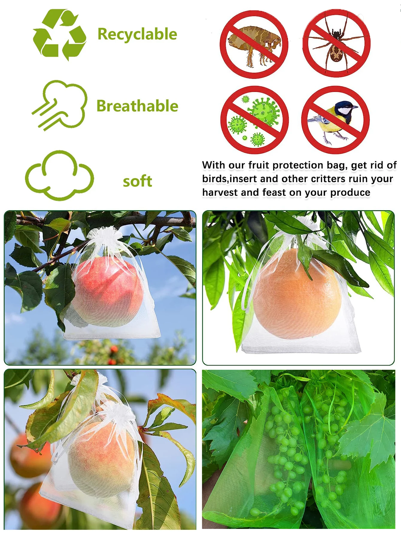 20Db Gyümölcsvédő Hálózsák Kerti Hálózsákok Mezőgazdasági Kártevőirtó Cront Control Bird