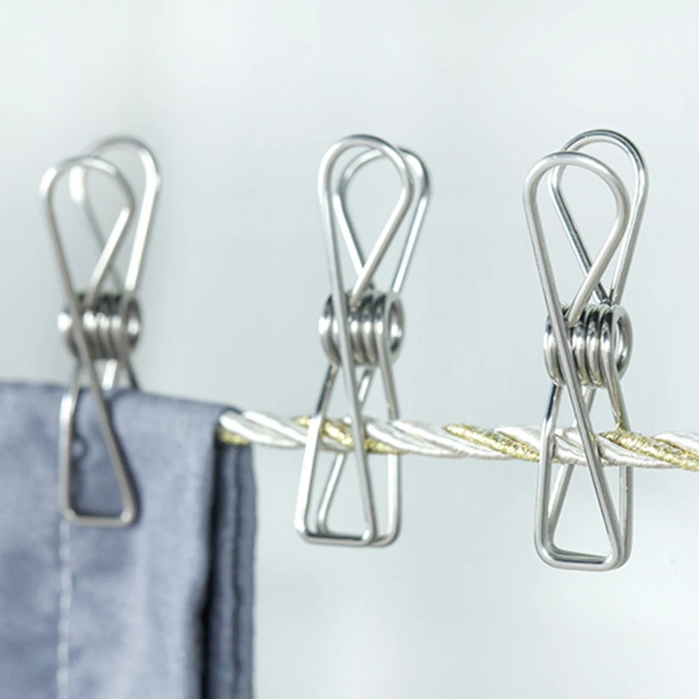 20 db Többcélú Rozsdamentes Acél Nagy Klipek Ruhák Csapok Tartók Ruházati Bilincsek Tömítő Klip Háztartási Ruhacsipesz