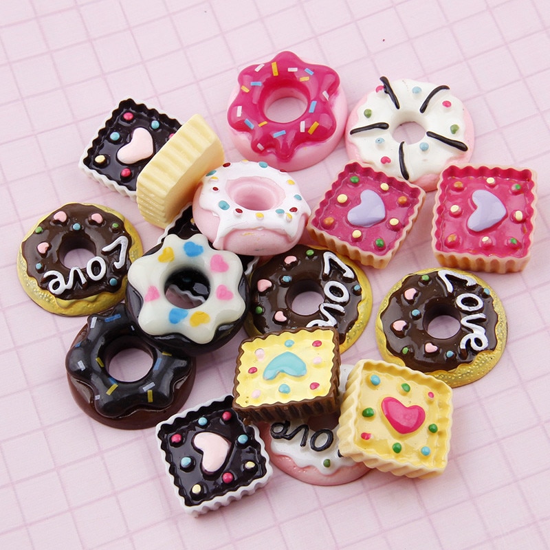 20Pc Vegyes Torta Fánk Macaron Gyanta Kawaii Dekoráció Miniatűr Krém Kenyér Étel Barkácsolás Műgyanta Díszítés