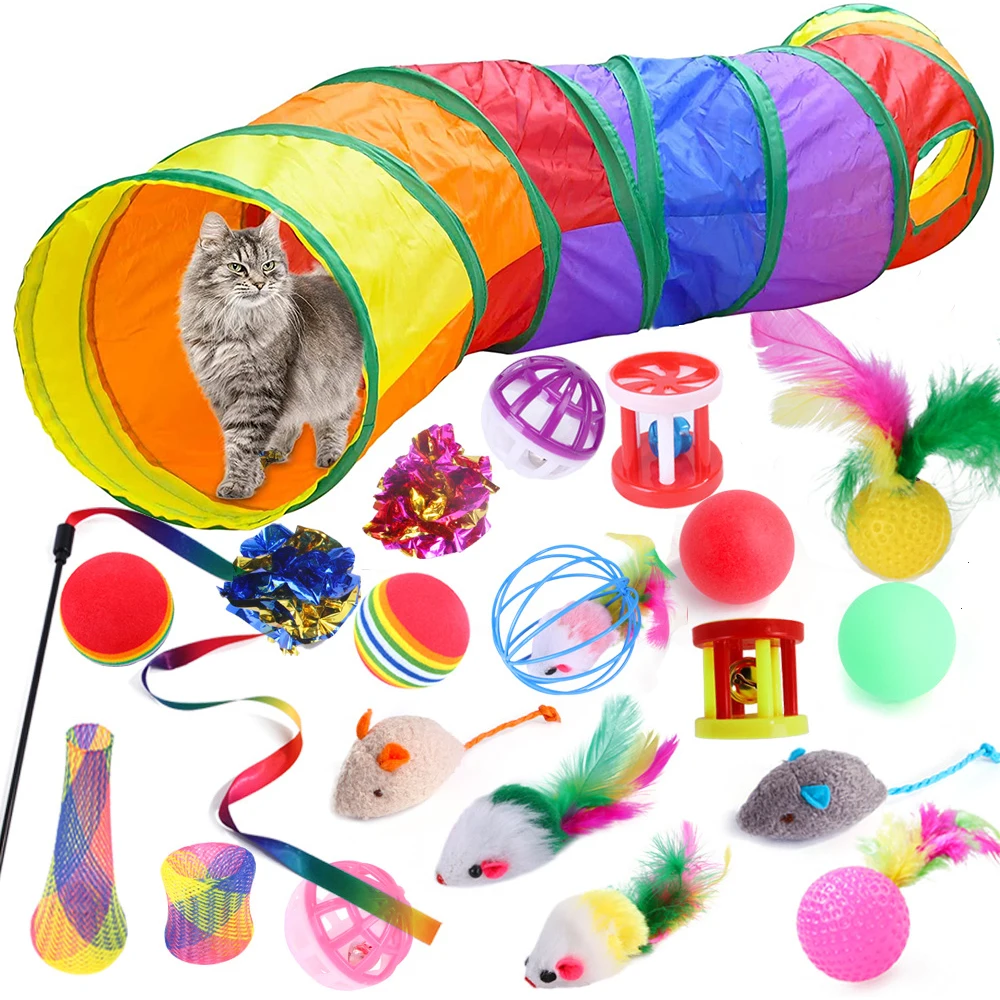 21 Dcs Macska Interaktív Háziállatok Tolljátékok Összecsukható Macska Alagutak Beltéri Macskák Játék Bolyhos Egér Ráncgolyók Kedvtelésből Tartott Alagút Játékok