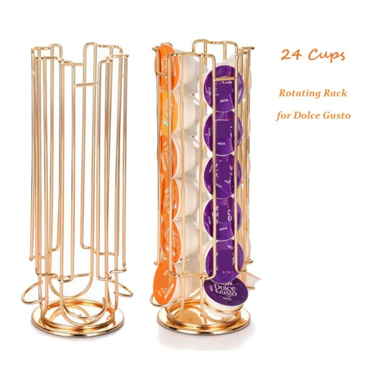 24 Csésze Kávéfőző Forgó Állvány Kávéfém Fémállvány A Dolce Gusto Kapszulák Tárolópolc Szervező Tartó Arany