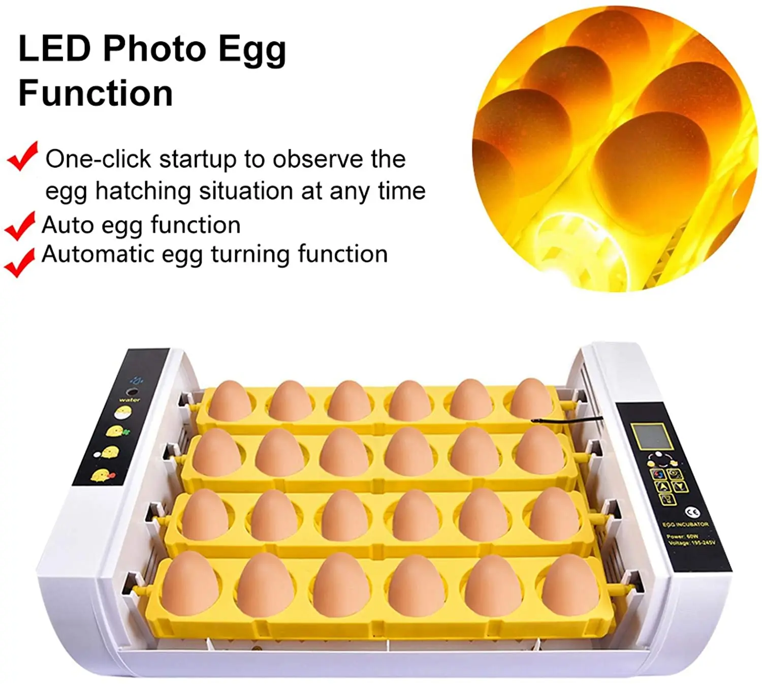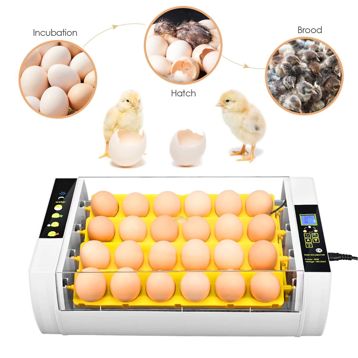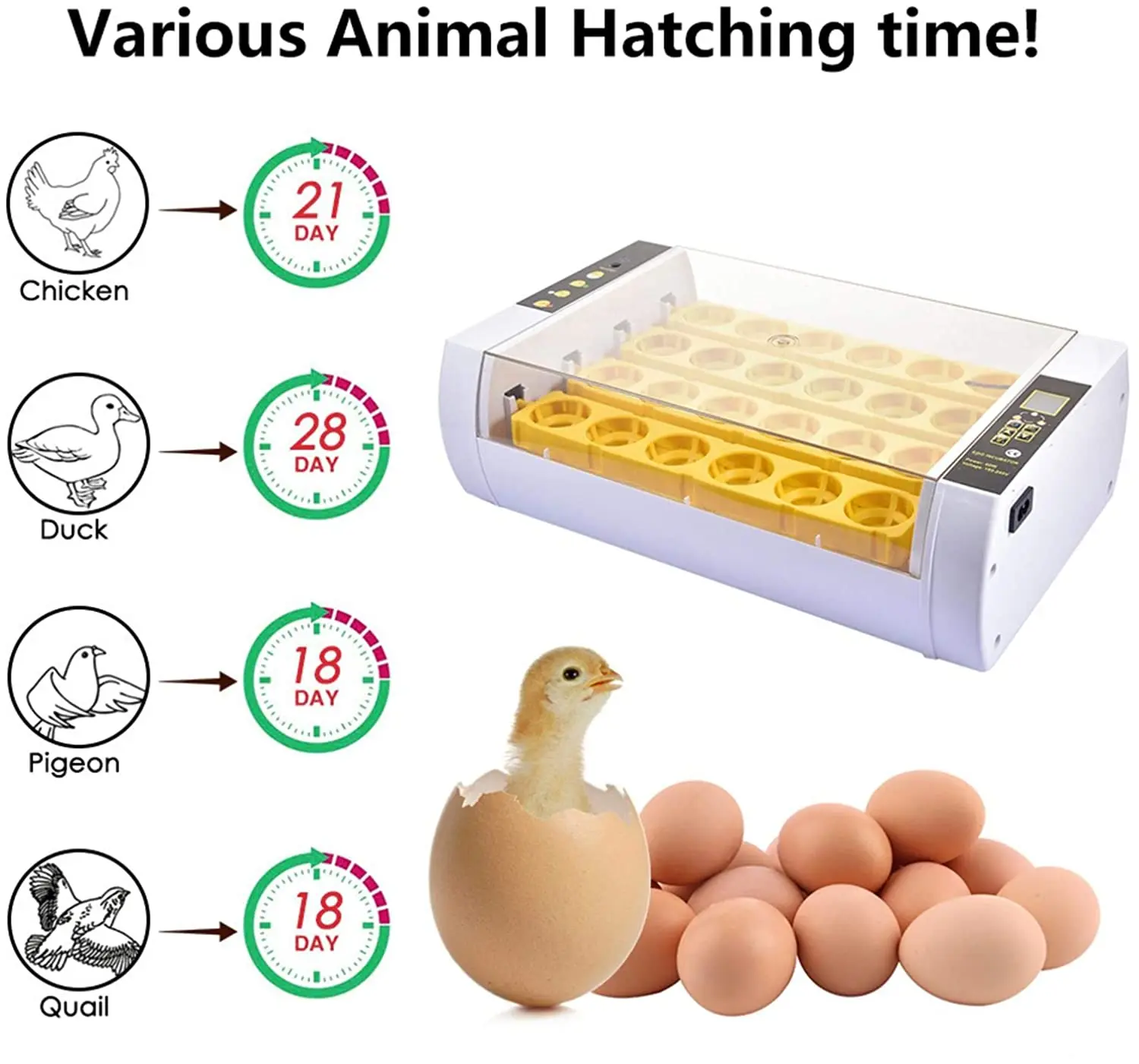 24 Tojás Inkubátor Automatikus Csirke Tenyésztő Páratartalom -Érzékelő Képernyőn Tojásfűtéses Fürj Madarak Inkubátorok 220 V -Os Baromfi Számára