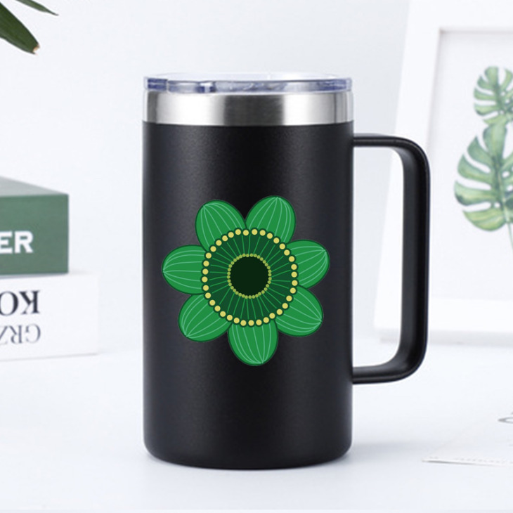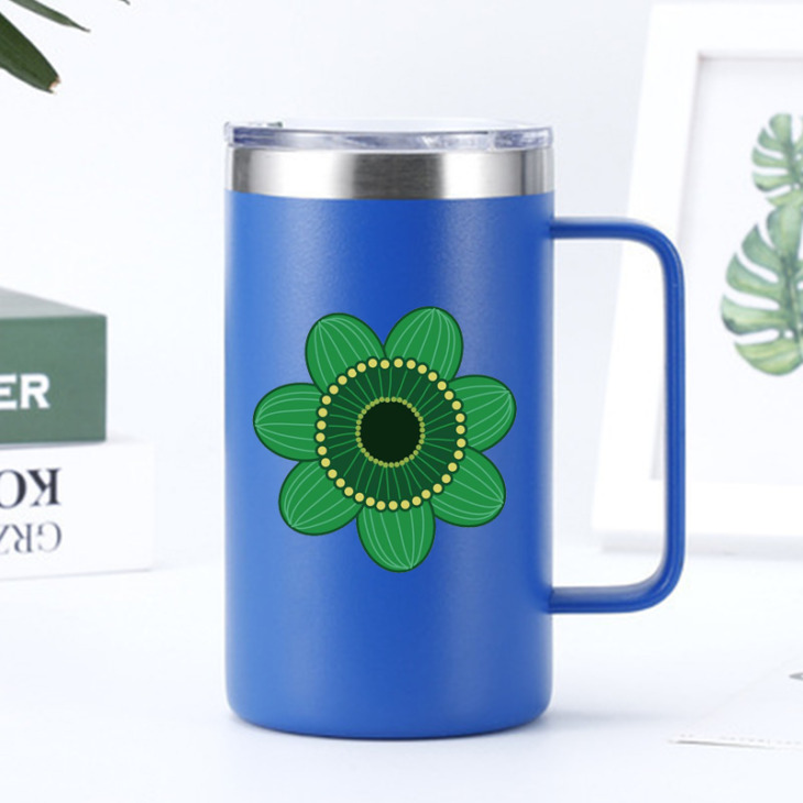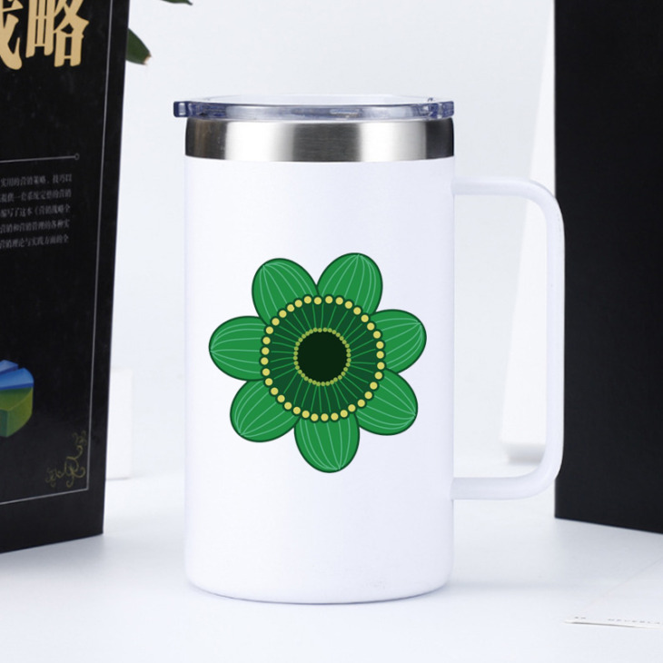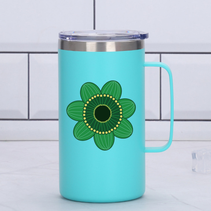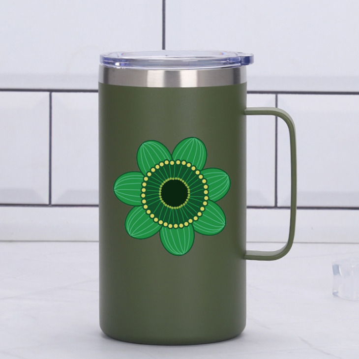 24Oz Zöld Virágmintás Kávé Bögre Fogantyúval Egyedi Kettős Fal Rozsdamentes Acél Vákuum Lombik Pohár