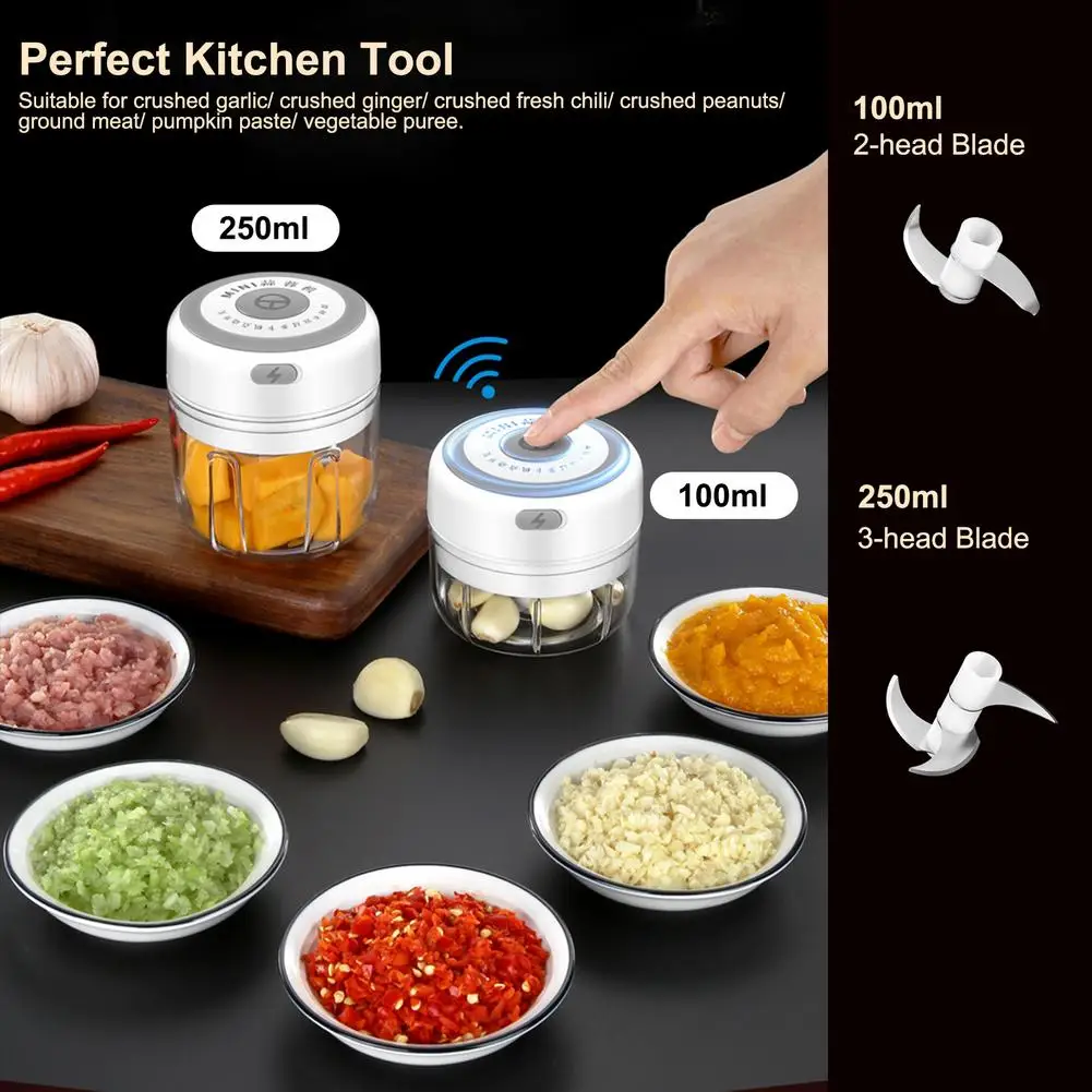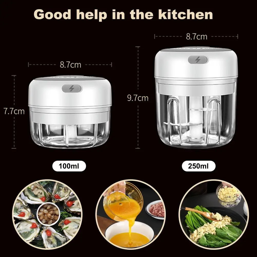 250/100 Ml Elektromos Mini Fokhagymás Chopper Usb Töltés Masher Sajtó Mincer Zöldség Chili Húsdaráló Étel Konyhai Szerszámok
