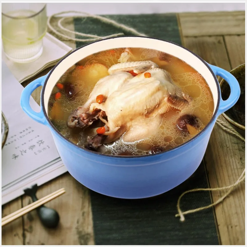 26 Cm/28 Cm Zománcozott Öntöttvas Rakott Konyha Forró Leves Edény Zománc Pörkölt Tenger Gyümölcsei Fedéllel