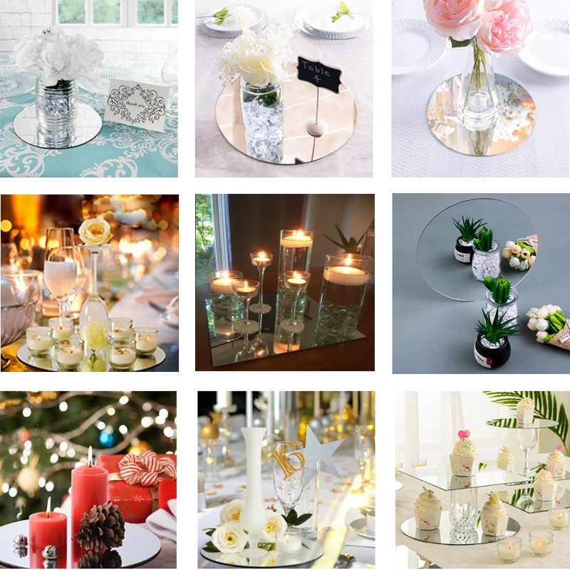 2Db 20 Cm Akril Tükrök Lapok Esküvői Torta Dekoráció Eredetiség Paszta Keret Nélküli Splicing Kombinált Fali Tükör Csempe