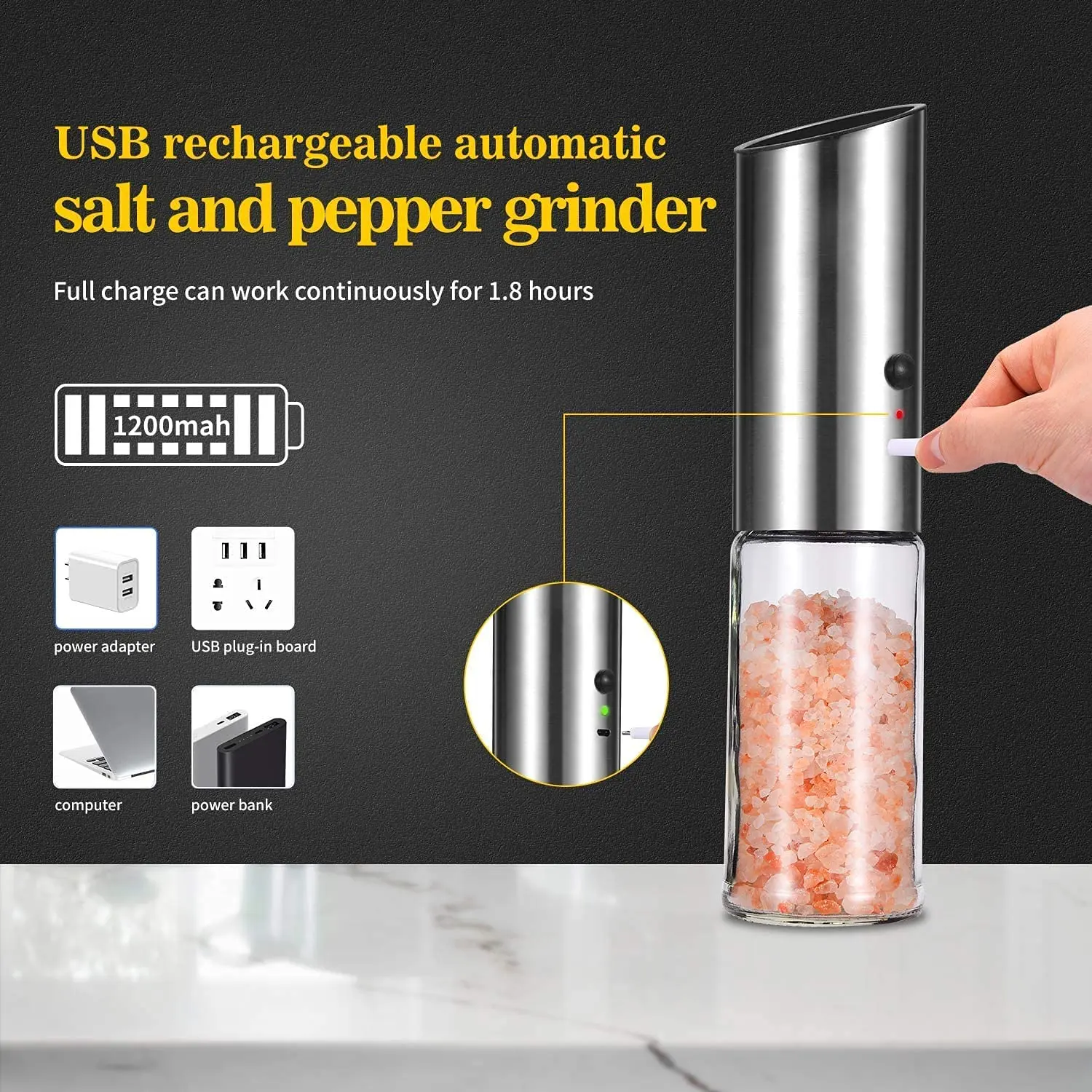 2Db Elektromos Só- És Borsmaradó Újratölthető Paprika Malom Állítható Durvaság Automatikus Fűszer Marógép Konyha