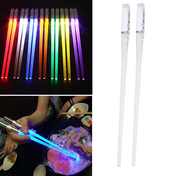 2Db / Pár Világító Pálcika Kínai Kreatív Biztonságos Étkészlet Izzó Led Fény Rafelhasználható Party