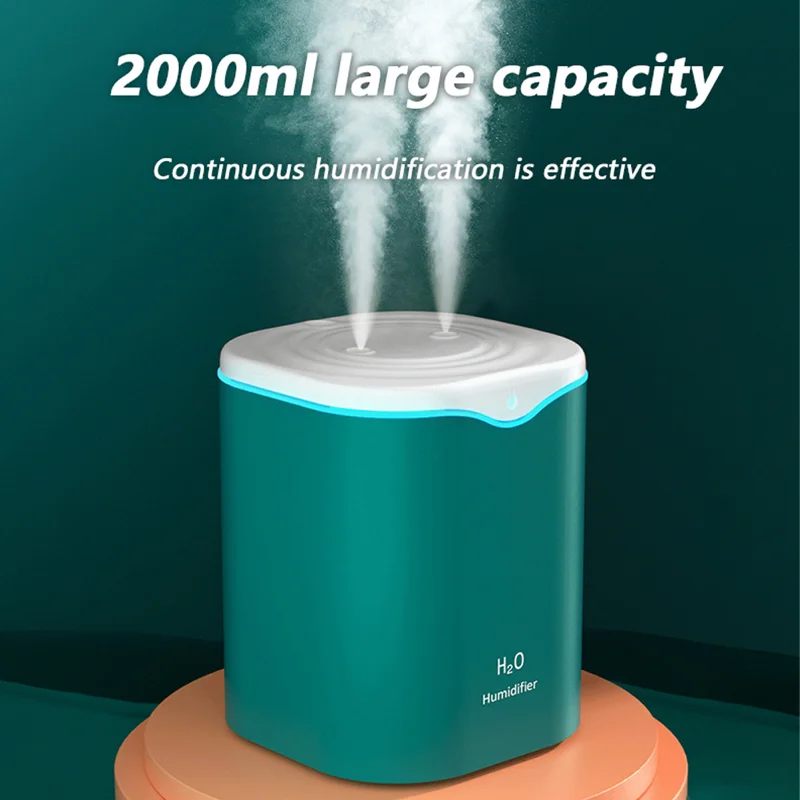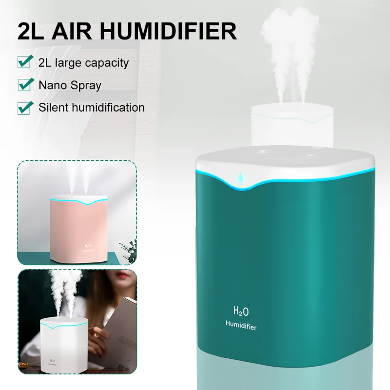 2L Air Napififier Nagy Víztartály Dupla Spray -Fúvóka Usb Illóolaj Diffúzor Ultrahangos Aroma Színes Éjszakai Fény