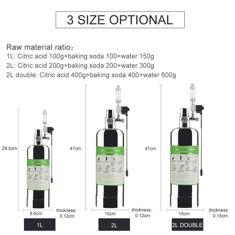 2L Kettős Akvárium -Co2 Generátor Rendszer Készlet Rozsdamentes Acél Szén -Dioxid Henger Generátor Rendszer Akvárium -Haltartályhoz