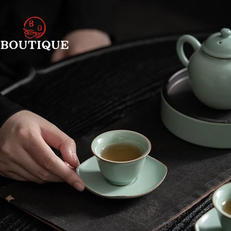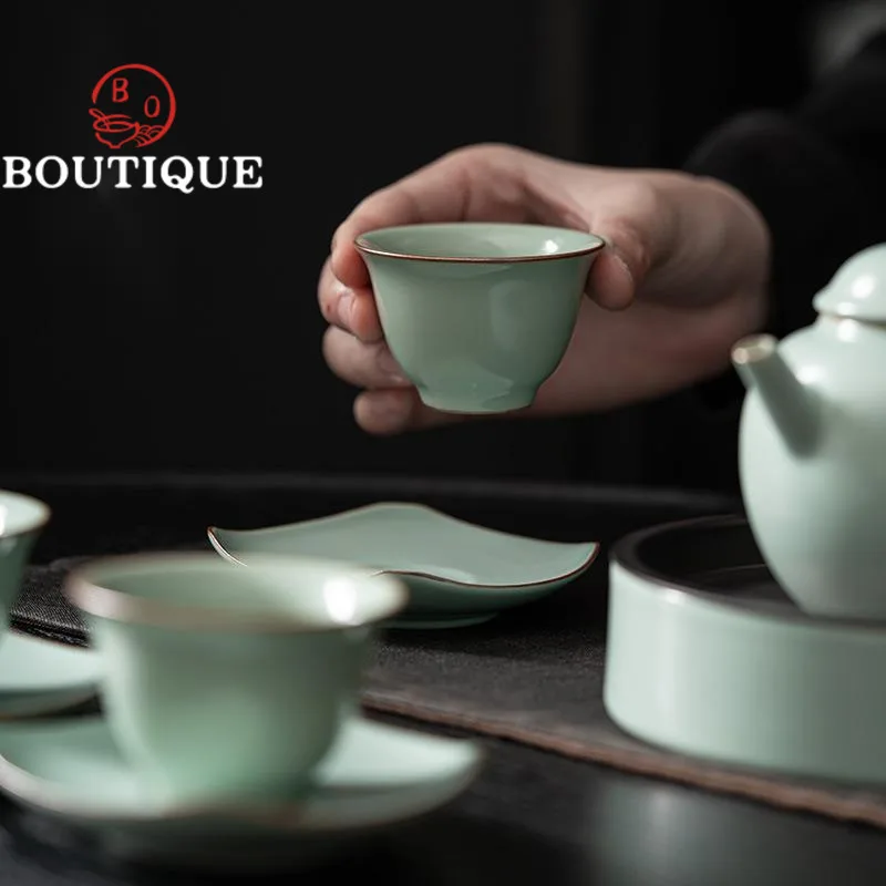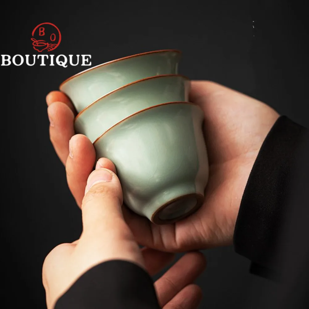 2Pc/Set Azure Ru Kemencék Porcelán Tea Csésze Kézzel Készített Kerámia Mesterkupa Egy Kis Tál Kung Fu Teamária Ajándék 45Ml