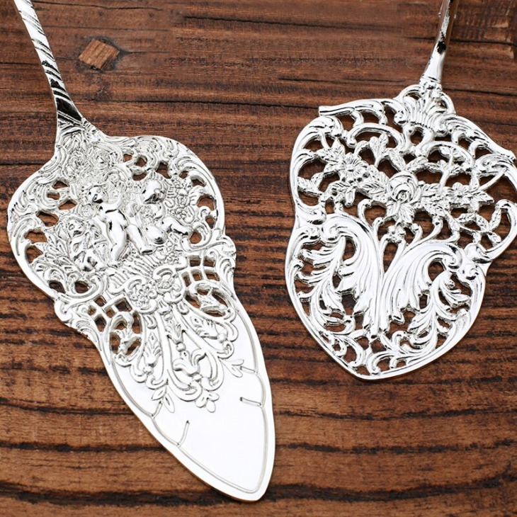 2Pcs-10Pcs Ezüst Barokk Sütemény Szerver Esküvői Torta Dekorációs Lapáttalás Desszert Kenyér Pizza Spatula Ezüst Edények 8 ” 20,5 Cm