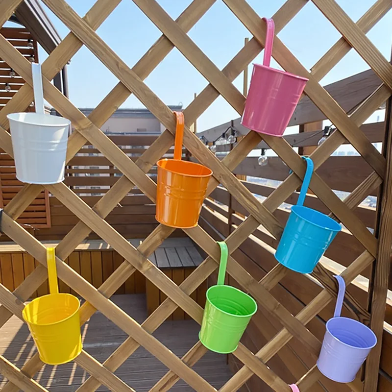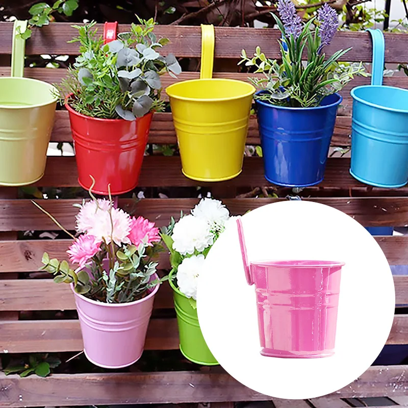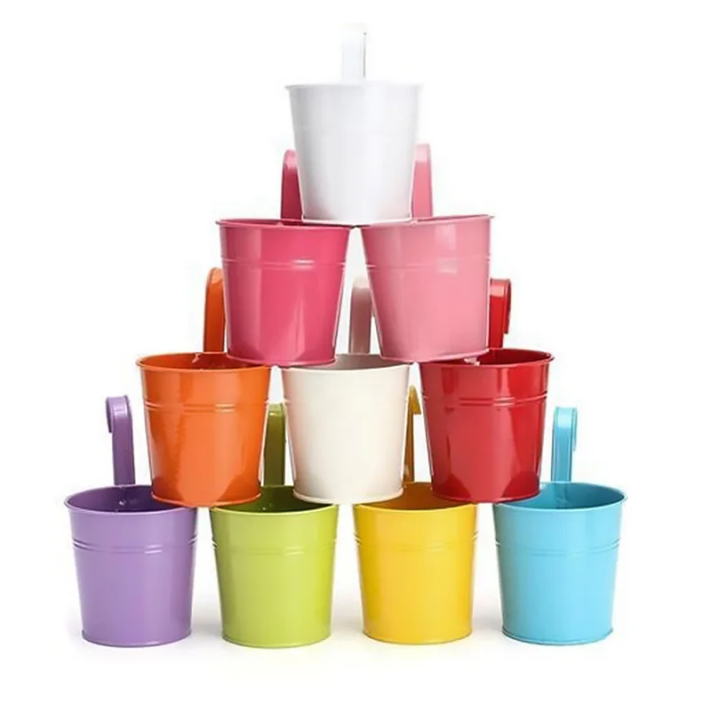 3/10 db Falfüggő Virágcserepek 10 Színű Fém Fogantyúval Vas Erkély Ültetvények Vödör Virág Tartó Kerti Dekoráció