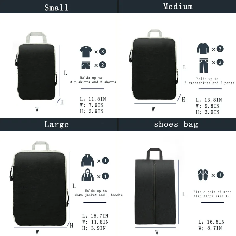 3/4D/4Db Utazási Szervező Táska Gyűrő Csomagoló Kockák Nylon Hordozható Kézitáska Poggyász Tároló Összecsukható Vízálló Cipőzsák