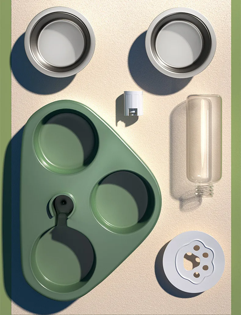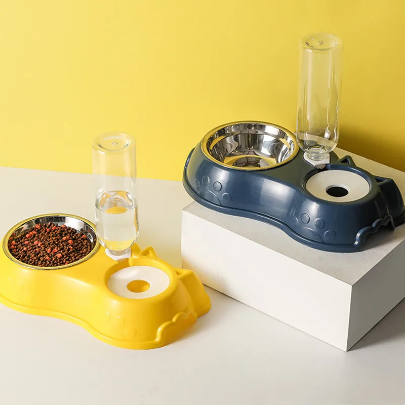 3 Az 1 -Ben Az Automatikus Ivó Adagolók Függőleges Kisállat Kiskutya Macska Étel Konténer Tányér Dupla Tál Adagoló 500 Ml Ivó Palackkal