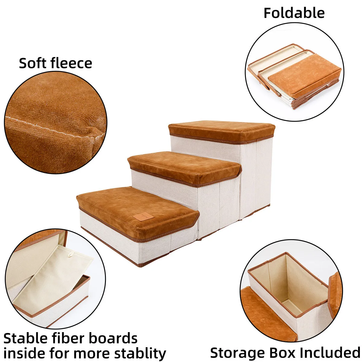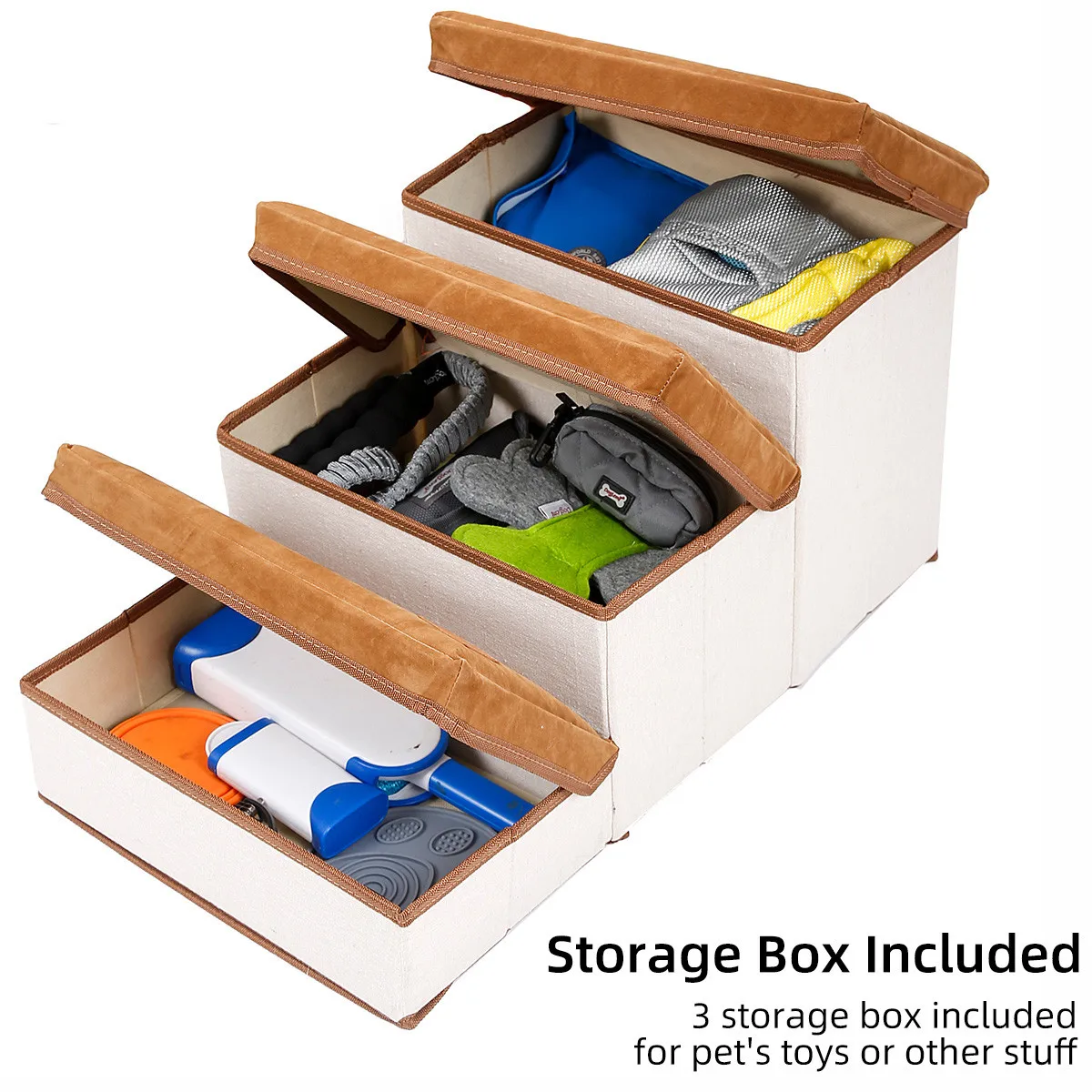 3 Rétegű Kisállat -Kutya Macska Lédbők Ágyhoz És Autóhoz, Összecsukható Extra Széles Kutya Rámpák Létrán Tároló Rekesz Kedvtelésből Tartott Termékkel