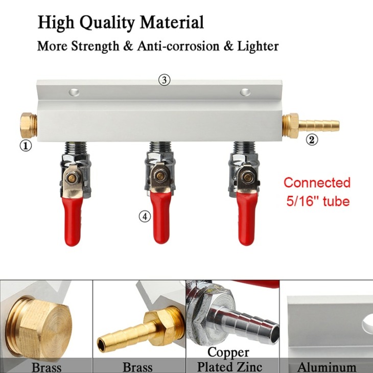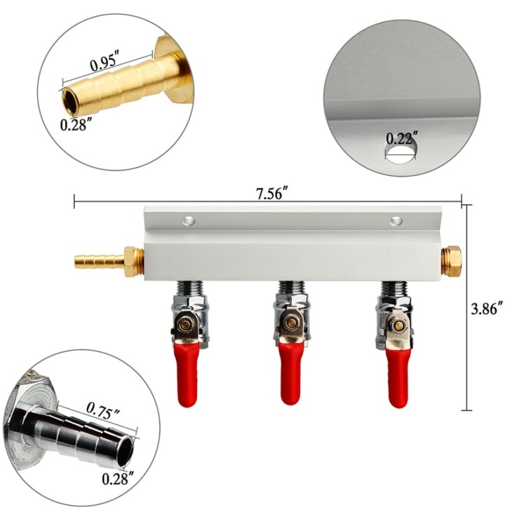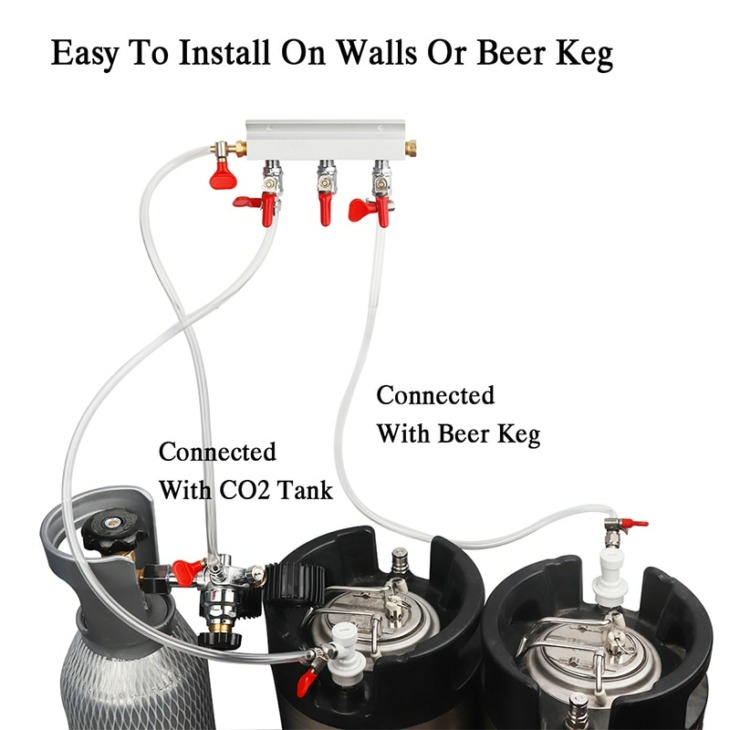 3 Út Co2 -Gázelosztó Elosztó Elosztó 9 Mm -Es Tömlőjével Barb Bemeneti/Kimeneti Szerelvényekkel A Sörhordó Huzathordóhoz, Otthoni Sörfőzőszelepek