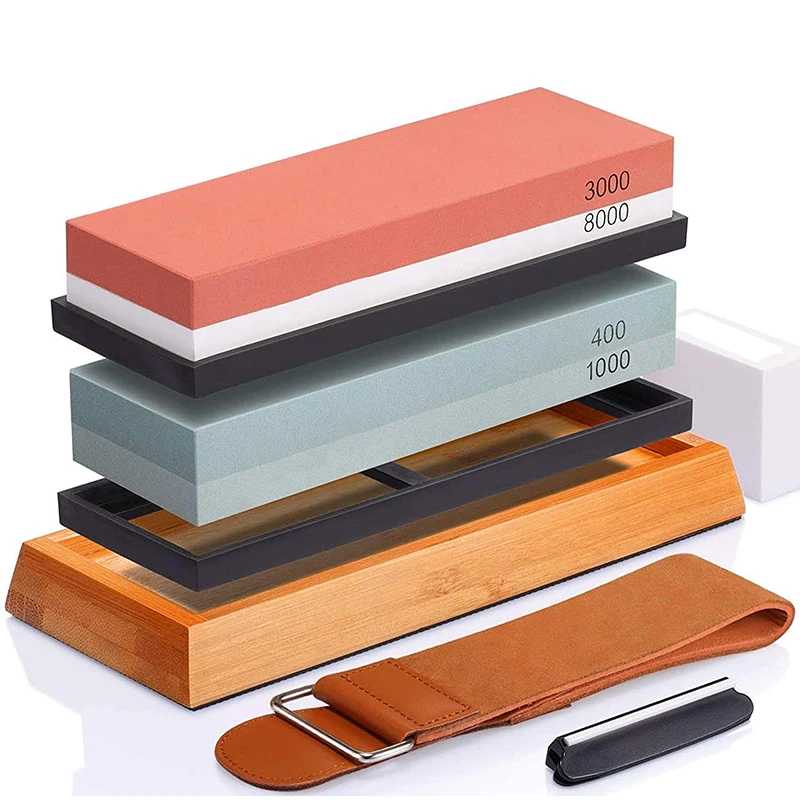 3000 8000 Késélesítő Kőkészlet Nem Csúszás Nélküli Bambusz Alapprofesszionális Whetstone-Készlet A Séf Laposító Kő Konyhai Szerszámhoz