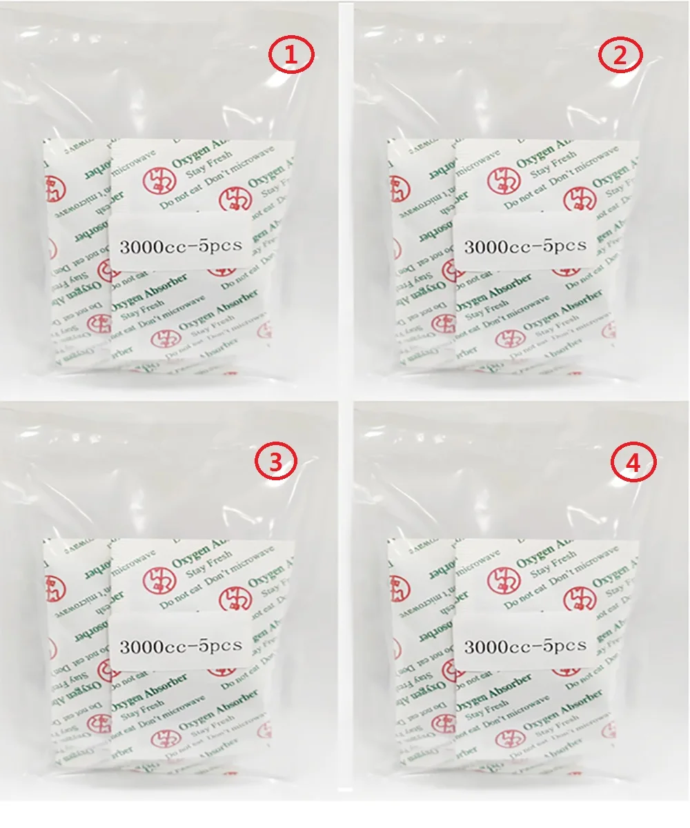 (3000 Cc-5 Pbs)*4 Csomag Összesen 20 Darabos Nedvességgátló-Abszorbens Háztartási Élelmiszer-Minőségű Oxigén Abszorbensek Élelmiszer-Tárolására Mylar Táskákkal