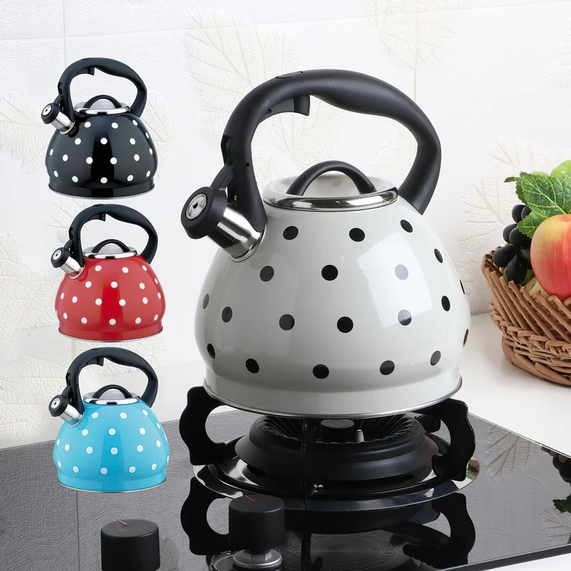 304 Rozsdamentes Acél Vízforraló Síp 3L Hullámpont Fekete Piros Gömb Alakú Forró Vízi Edény Indukciós Főzőlap Háztartási Konyhák