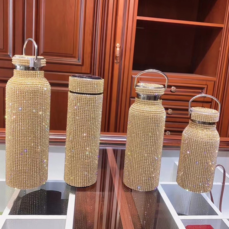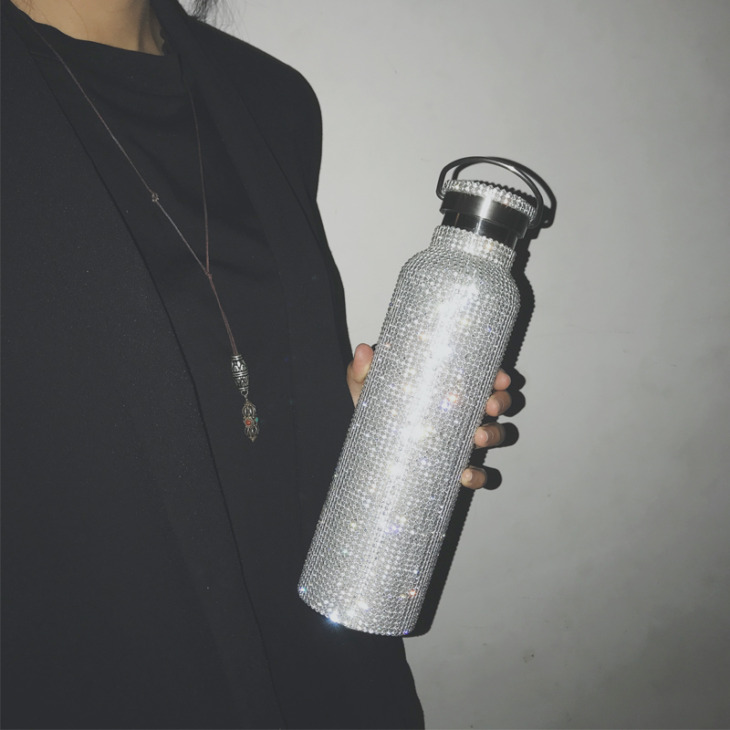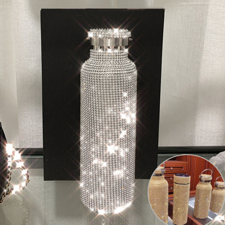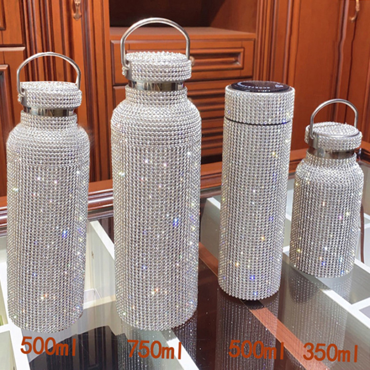 350/500/750 Új Kialakítású Gyémánt Vizes Palack Termosz Vákuum Lombik Rozsdamentes Acél Hőkezelők Hordozható Ezüst Vizes Palackok