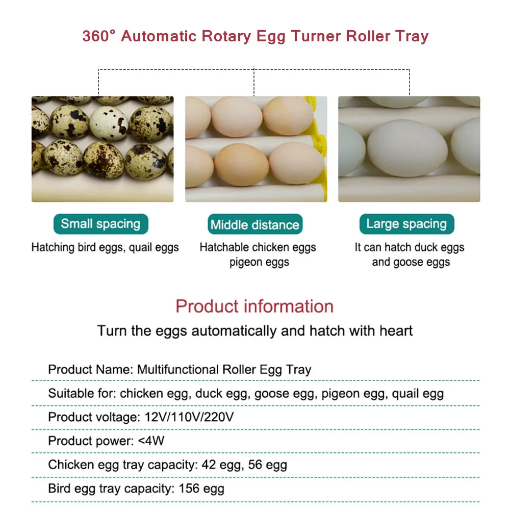 360 ° Automatikus Rotációs Tojás -Forgóhenger Tálca Tojás Inkubátor Tartozékok Görgősmintás Tojás -Tálca Tálca 42/56/156 Tojás