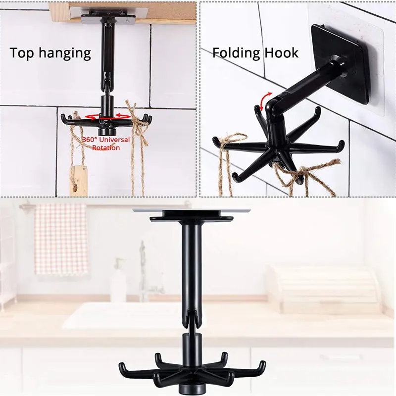 360 Forgatás Összecsukható Horog Többcélú Függő Edény Tartó 200 Fokos Függőleges Flip Ragasztóhorog A Konyhai Fürdőszobához