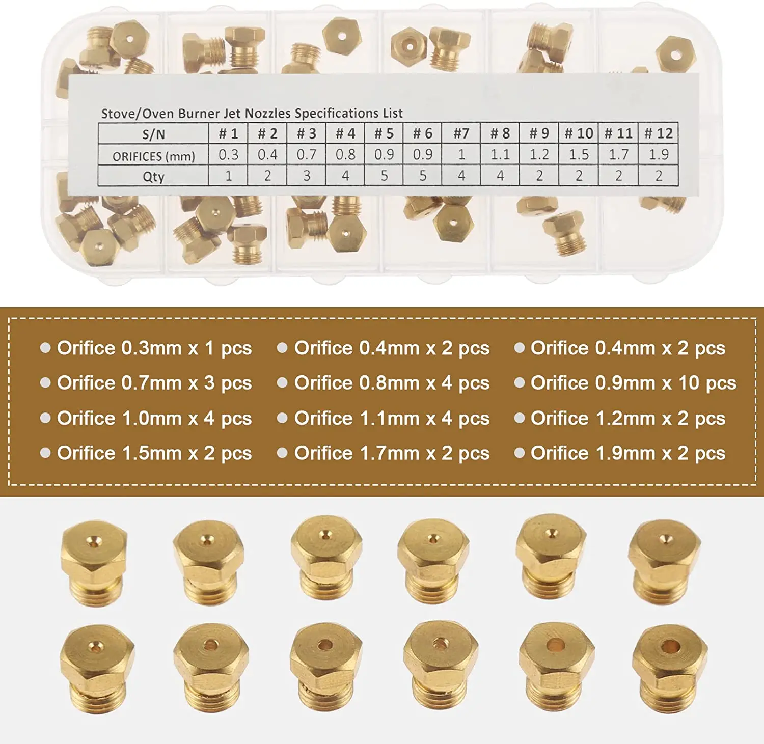 36Db/Készlet Sárgaréz Lp Gáztartomány Nyíláskonverzió Cserélje Ki Az M6X0.75 Mm-Es Gázpermet-Tippeket 0,3-1,9 Mm Propán Égő Fúvóka Készlet