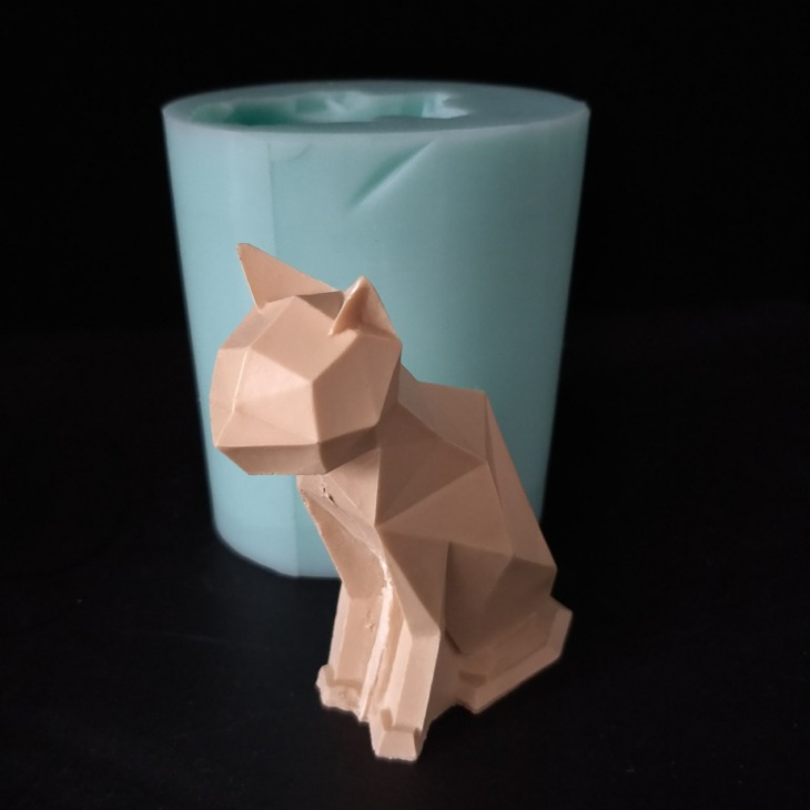 3D Állati Macska Geometriás Cica Beton Cement Penész Aroma Kő Penész Kézi Diy Szilikon Penész Gyertya Penész