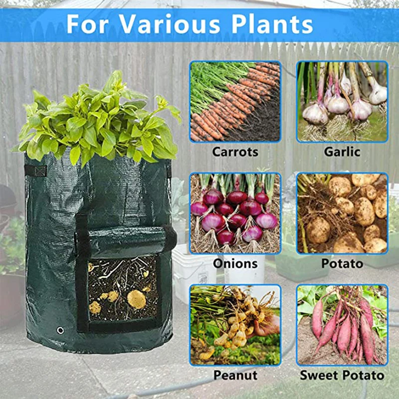 3Db Burgonya Termesztés Táska Pe Zöldségnövekedés Fogantyúval Megvastagodott Zöldség Hagyma Növényi Kültéri Kerti Edények