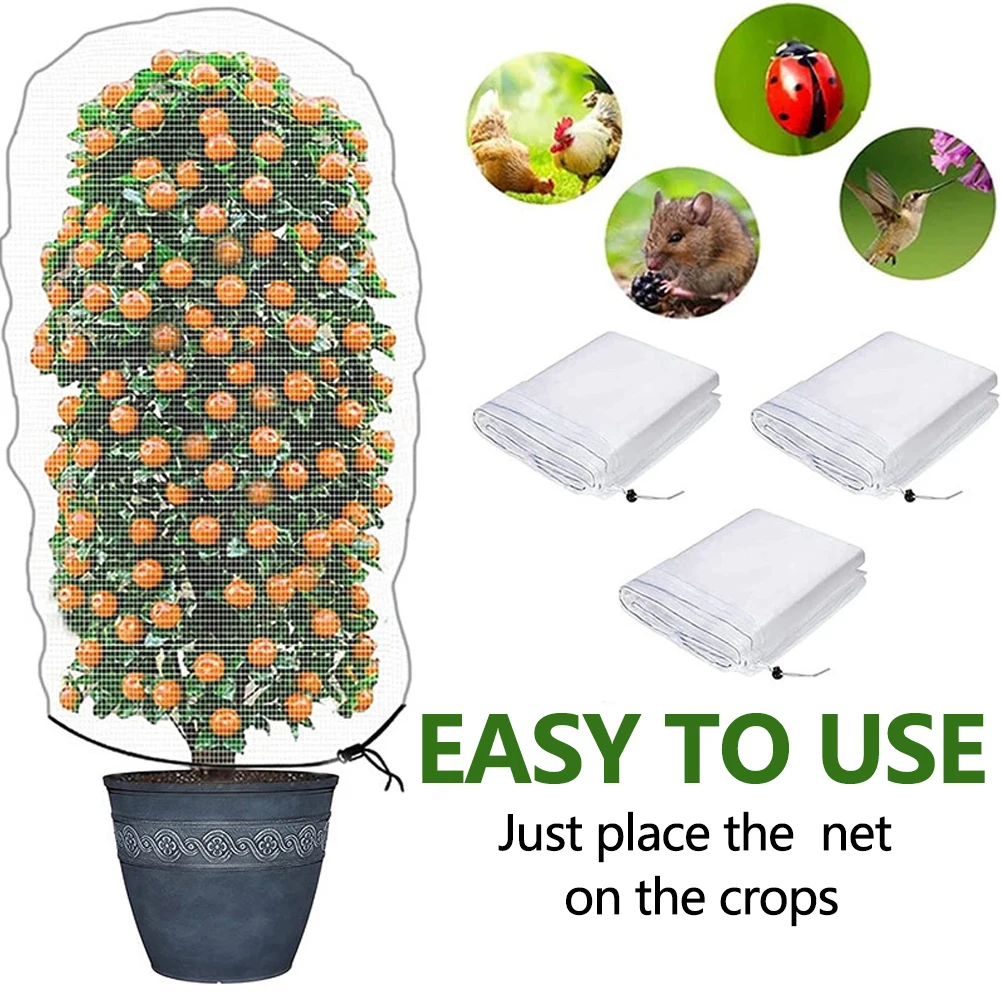 3 db Növényfedelek Húzózsinórral, Újrahasznosítható Időjárással Szemben Ellenálló Paradicsomfaj Védelmezője A Madarak Virágháló Kerti Táskáknak