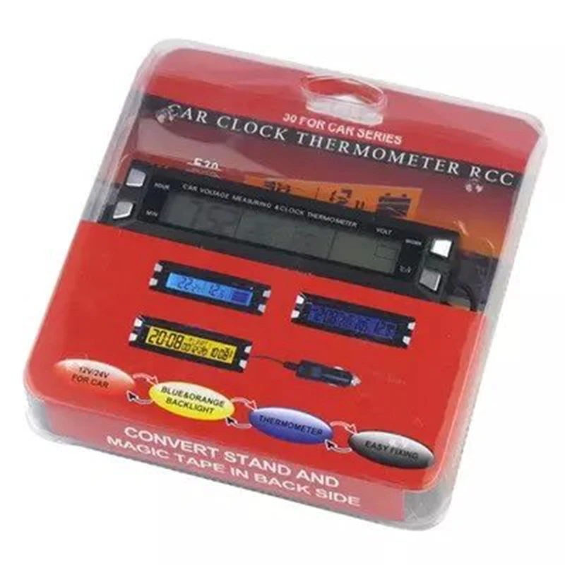 3In1 Digitális Lcd In/Kültéri Autó Hőmérő Akkumulátor Feszültség Hőmérséklet -Monitor Mérő Autóóra Időjárási Állomás Érzékelővel