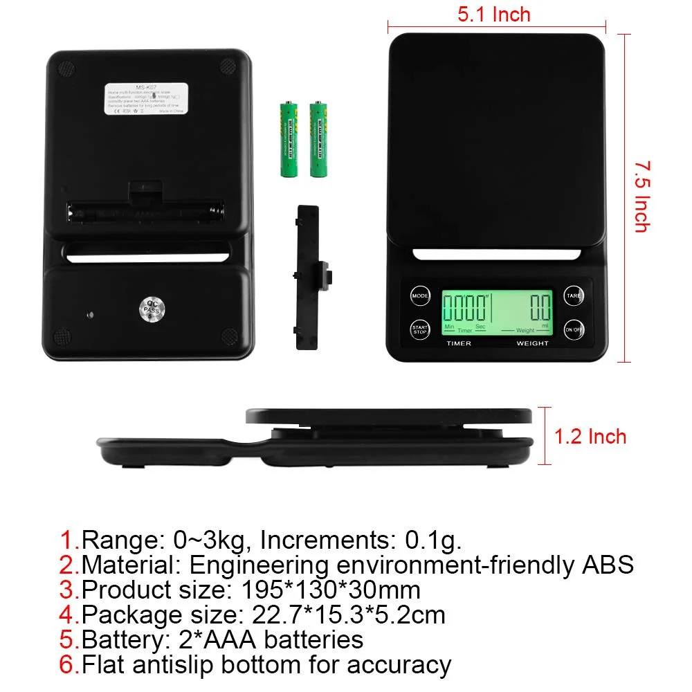 3Kg 0,1 G 5 Kg Súlyú Kávécserék Időzítő Digitális Konyhai Skála Nagy Pontosságú Lcd -Skálákkal
