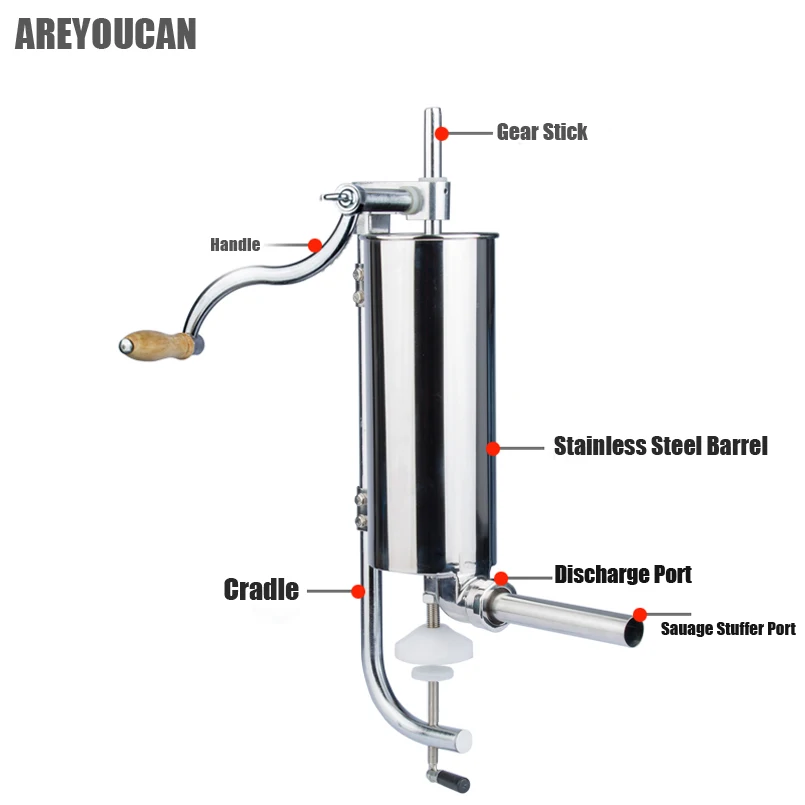 3L Háztartási Kézikönyv Kolbász Hús Cucc Rozsdamentes Acél Kézi Működtetett Húsprocesszor Gyártó Függőleges Töltőgép