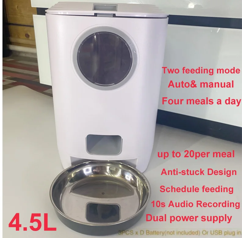 4.5L Új Automatikus Időzítés Intelligens Adagoló Automatikus Pet -Adagoló Macskás Kutya Elektromos Száraz Élelmiszer -Adagoló Tálak Termékkészletek