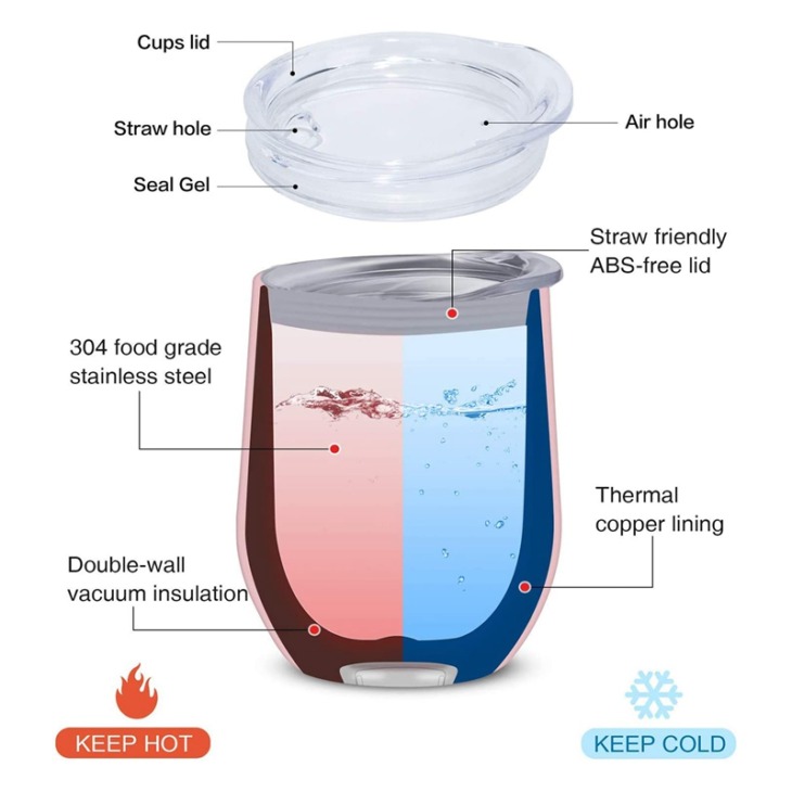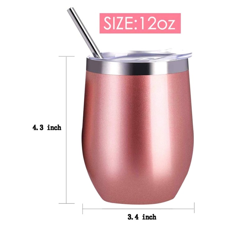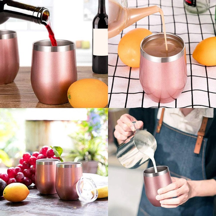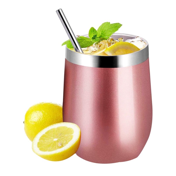 4 Csomag 12 Uncia Rozsdamentes Acél Szár Nélküli Bor Gl/Bögre, 4 Szalmával Szigetelt Hőkorral, Fedelekkel A Kávéhoz