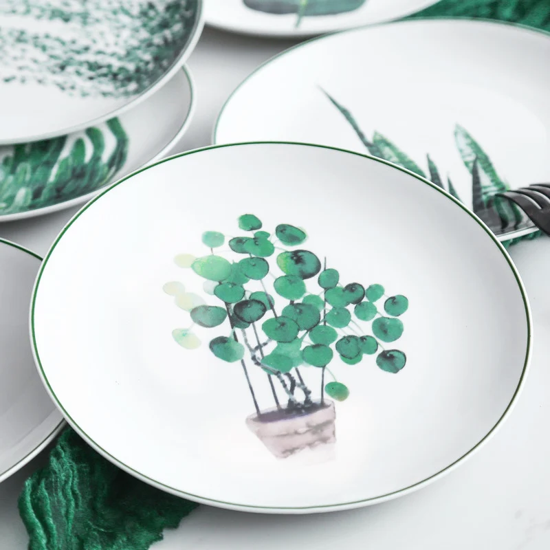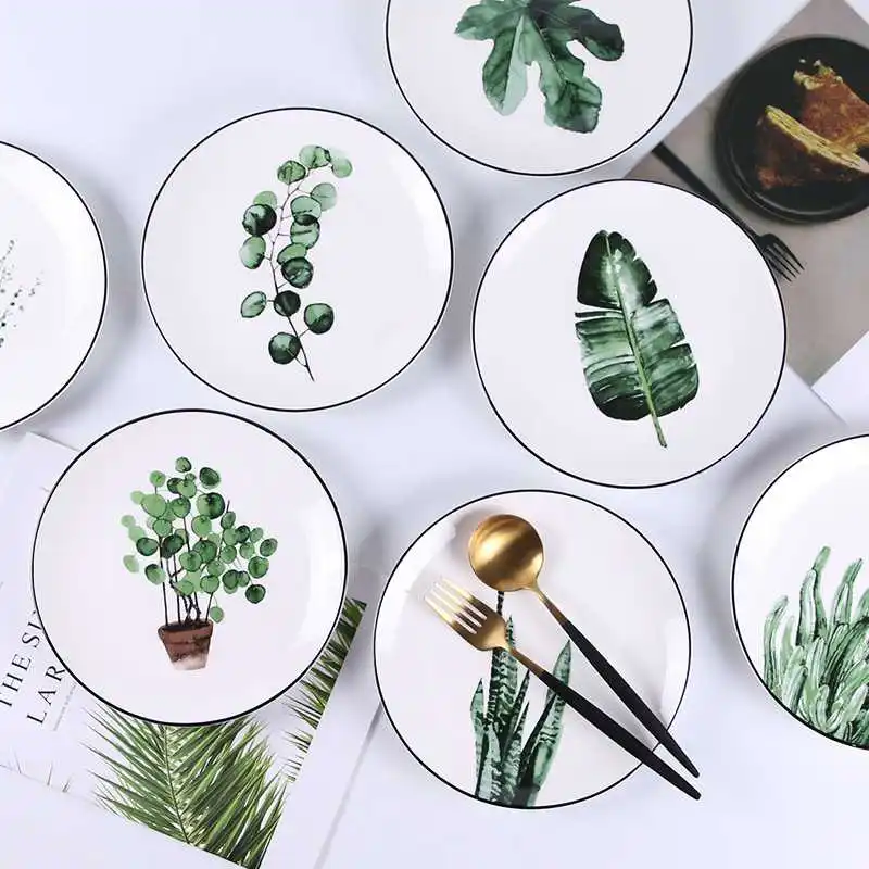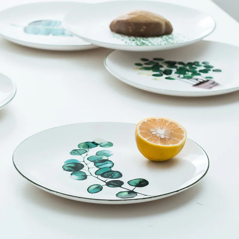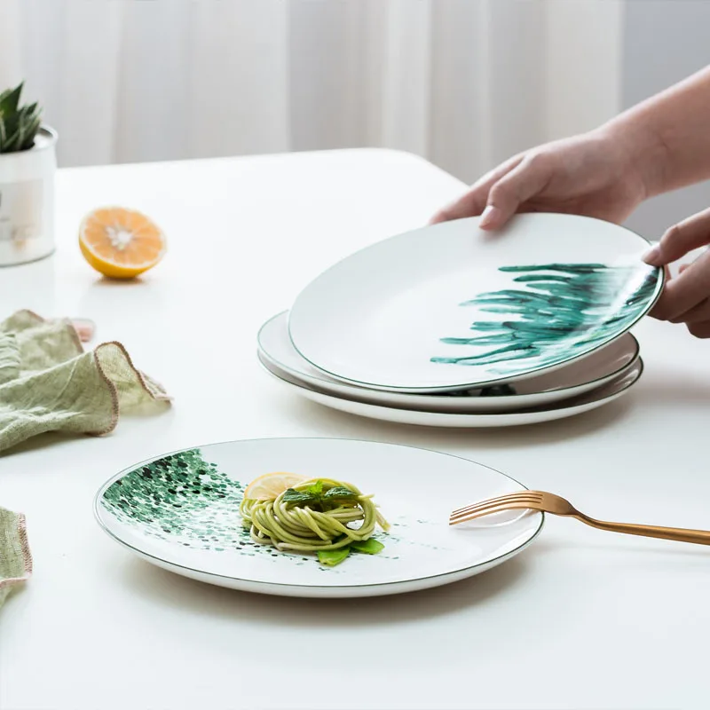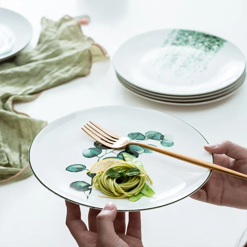 4 Db/Beállított Lemez Asztali Edények Porcelán 8 Hüvelykes Lemez Egyszerű Steak Tányér Reggeli Snack Tálca Kerámia Étkészlet Öko -Barát Edénykészlet