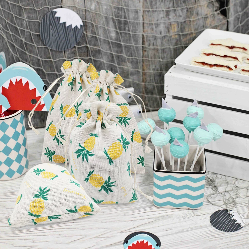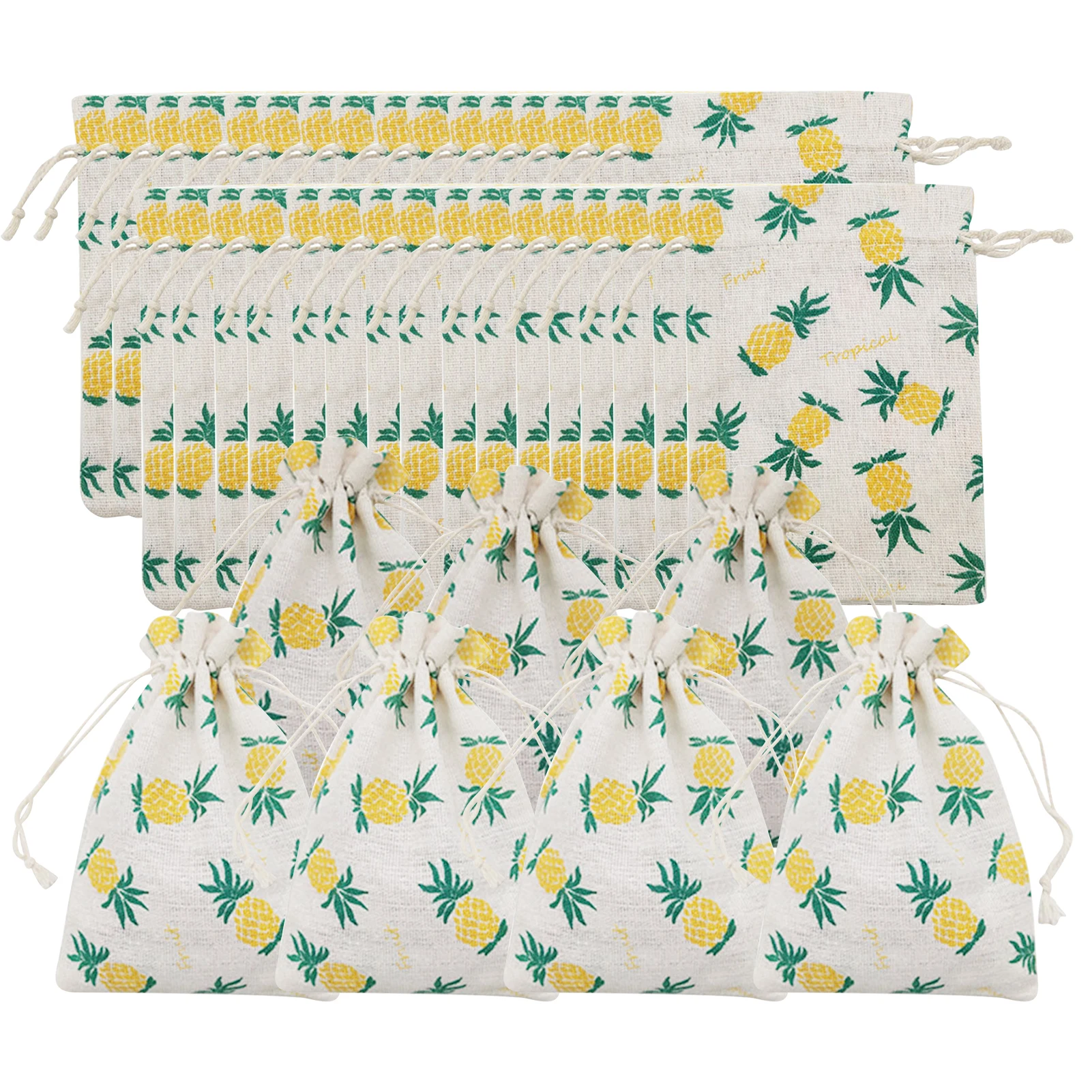 40 db Hawaii Mosható Party Kedvezményes Otthoni Ananászmintás Esküvői Vászon Ajándékcsomagolás Nyári Könnyű Húzózsák Hordozható