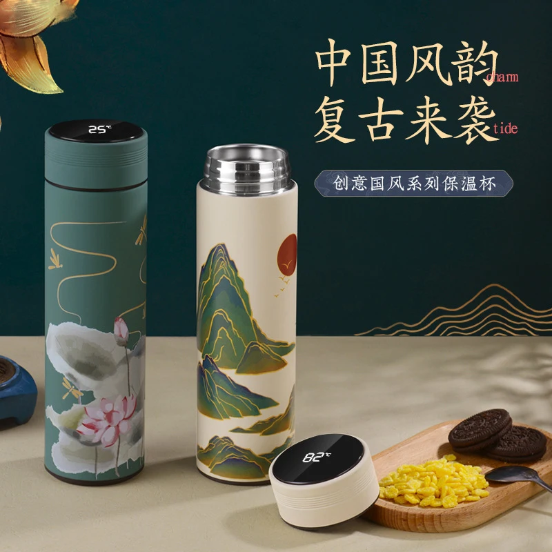 450 Ml Kínai Stílusú Intelligens Termosz Palack Klasszikus Stílusú Led -Os Touch Kijelző Rozsdamentes Acél Vákuum Lombik Bögrék Vizes Palackok
